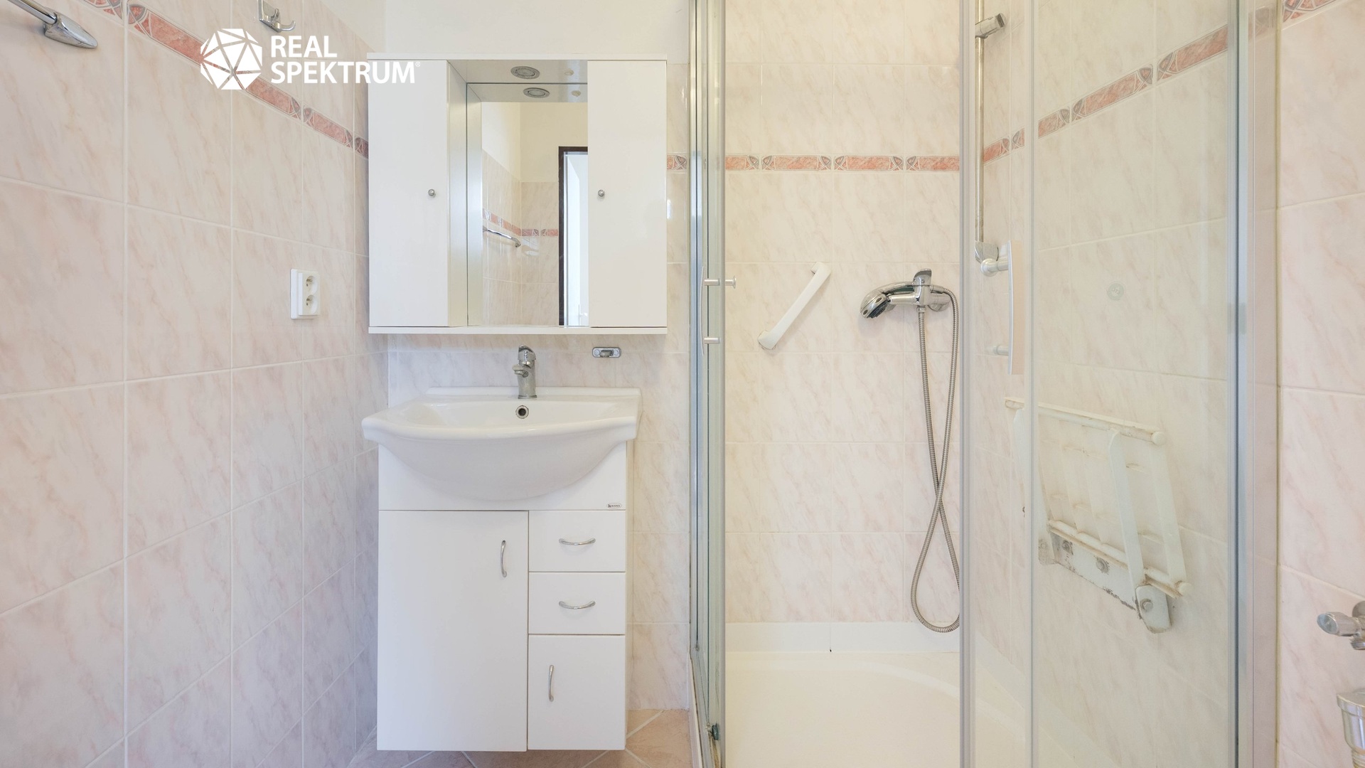 Součástí bytu je prostorná vstupní hala, obývací pokoj, samostatná kuchyň s novější kuchyňskou linkou, dvě ložnice, koupelna, WC a také šatna. Bytové jádro je po rekonstrukci, takže odpadá starost s náročnými zásahy, a zároveň zůstává prostor k případnému doladění interiéru podle vlastní představy. Pokoje mají samostatné vstupy, což je praktické jak pro rodinu, tak například pro spolubydlení.