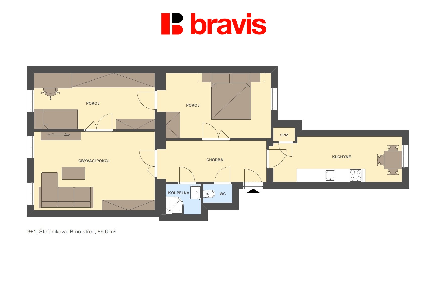 Prodej bytu 3+1, 89,6 m², Štefánikova, Brno – Ponava