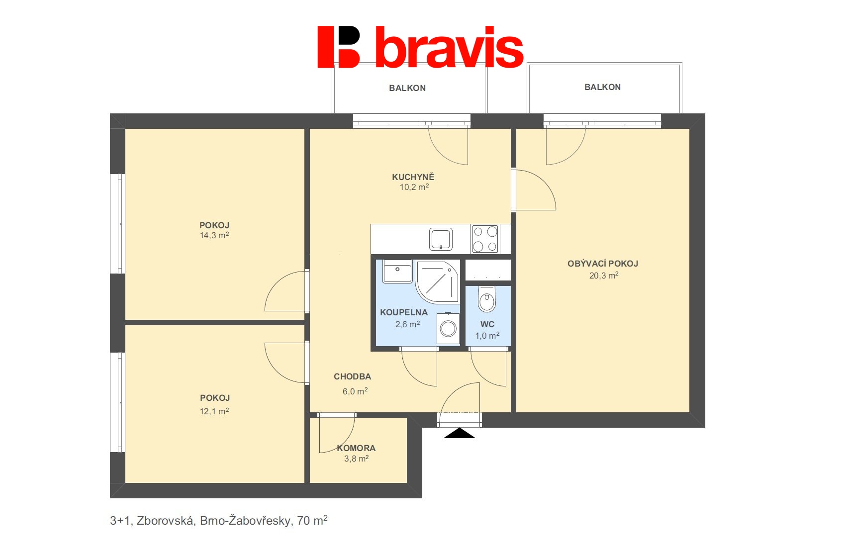 Prodej bytu 3+1, Brno - Žabovřesky, ul. Zborovská, 2x balkón, sklep