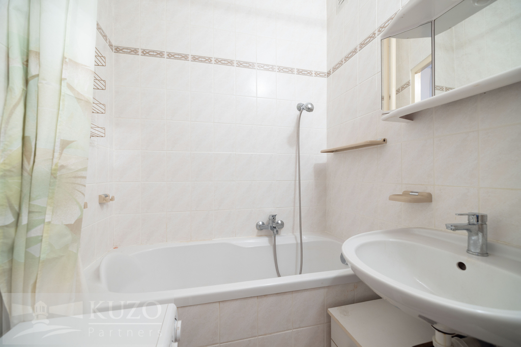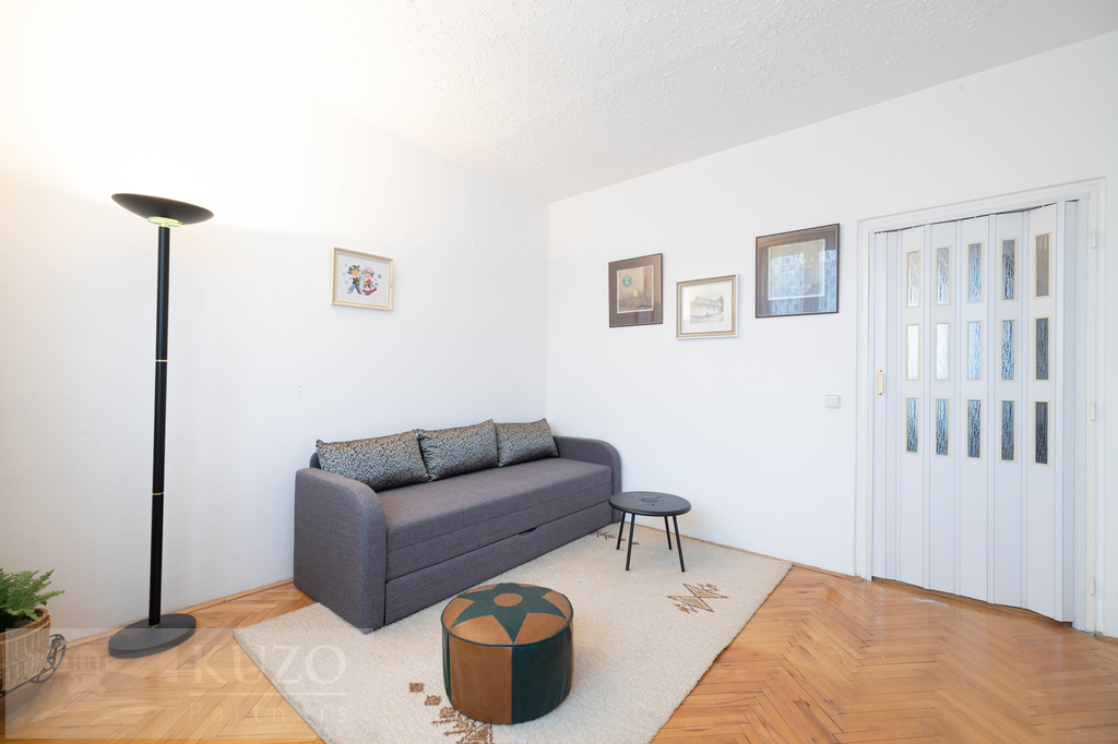 Udržovaný byt v původním stavu je kompletně vybavený starším nábytkem.
