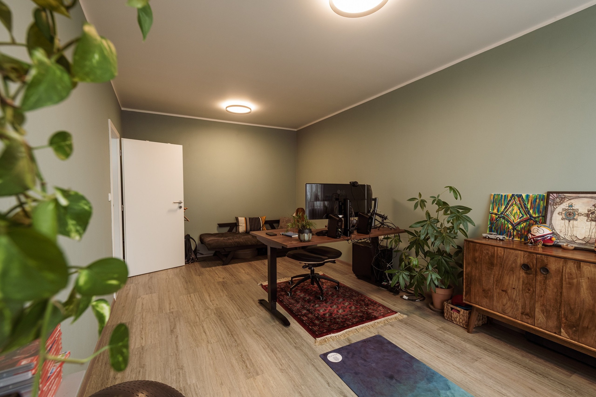 Byt se nachází ve zvýšeném 1. nadzemním podlaží moderního domu dostavěného v roce 2017. Byt je s bezbariérovým přístupem a disponuje prostornou šatnou s regály, což zajišťuje dostatek úložného prostoru. Okno ložnice je orientováno na sever, pracovna a obývací místnost jsou orientovány na východ, obě mají přímý vstup na balkon, ze kterého je krásný výhled směrem na hrad Špilberk a směrem k FN Brno. Součástí obývací místnosti je moderně zařízená kuchyňská linka s keramickou deskou a se spotřebiči AEG – indukční varná deska, parní trouba, myčka a lednicí Liebherr. Vytápění bytu je zajištěno podlahovým topením, povrch je v provedení vinyl. K dispozici je samostatné WC, v koupelně je vana s umyvadlem a přípojka pro pračku se sušičkou. Zařízení bytu bude možné odkoupit od stávajícího majitele po domluvě. V domě je rozveden internet Vodafone 1GB.