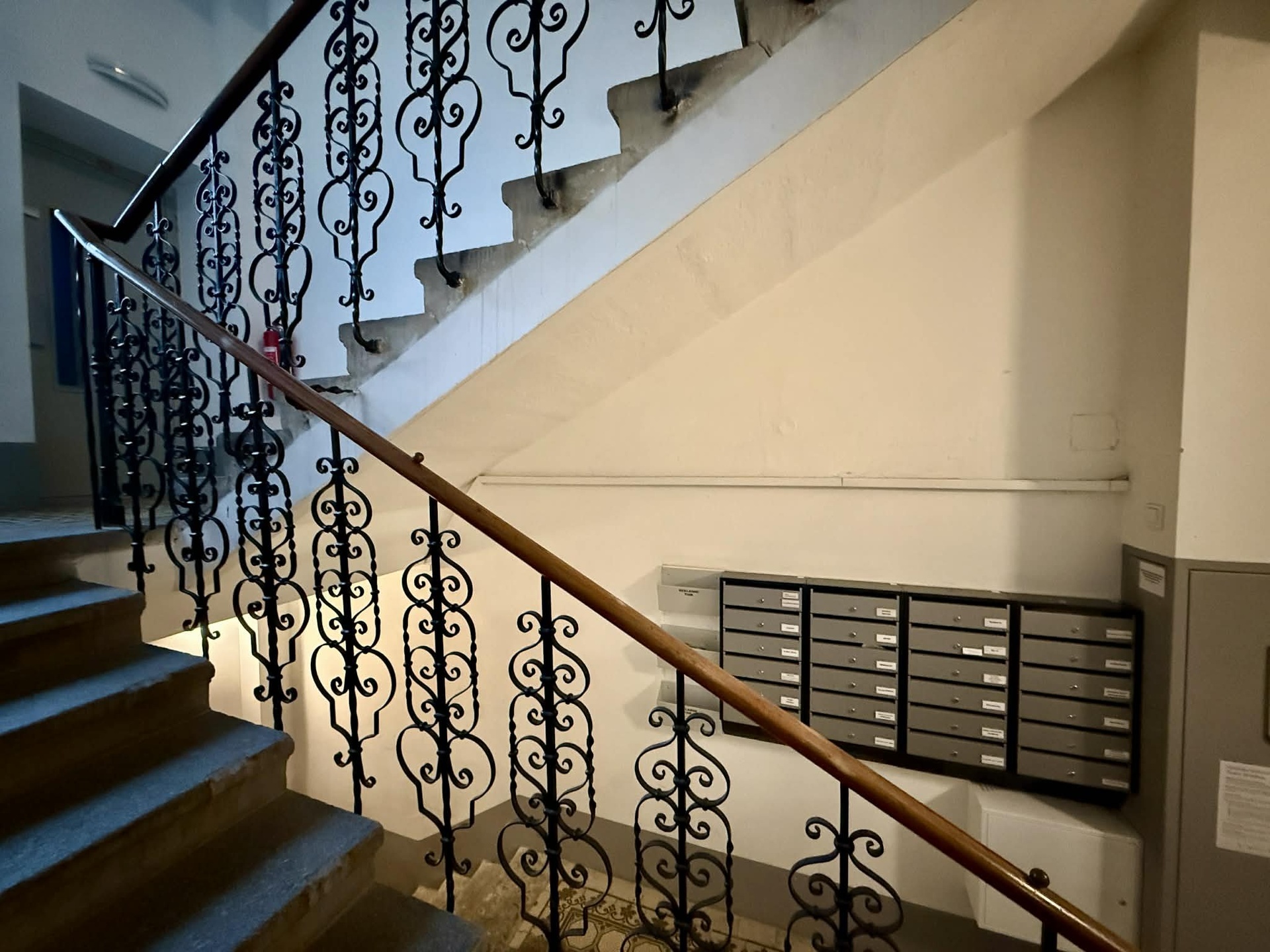 Byt je umístěn ve 2. nadzemním podlaží netypového cihlového domu staršího více než 100 let, který je součástí městské památkové rezervace.