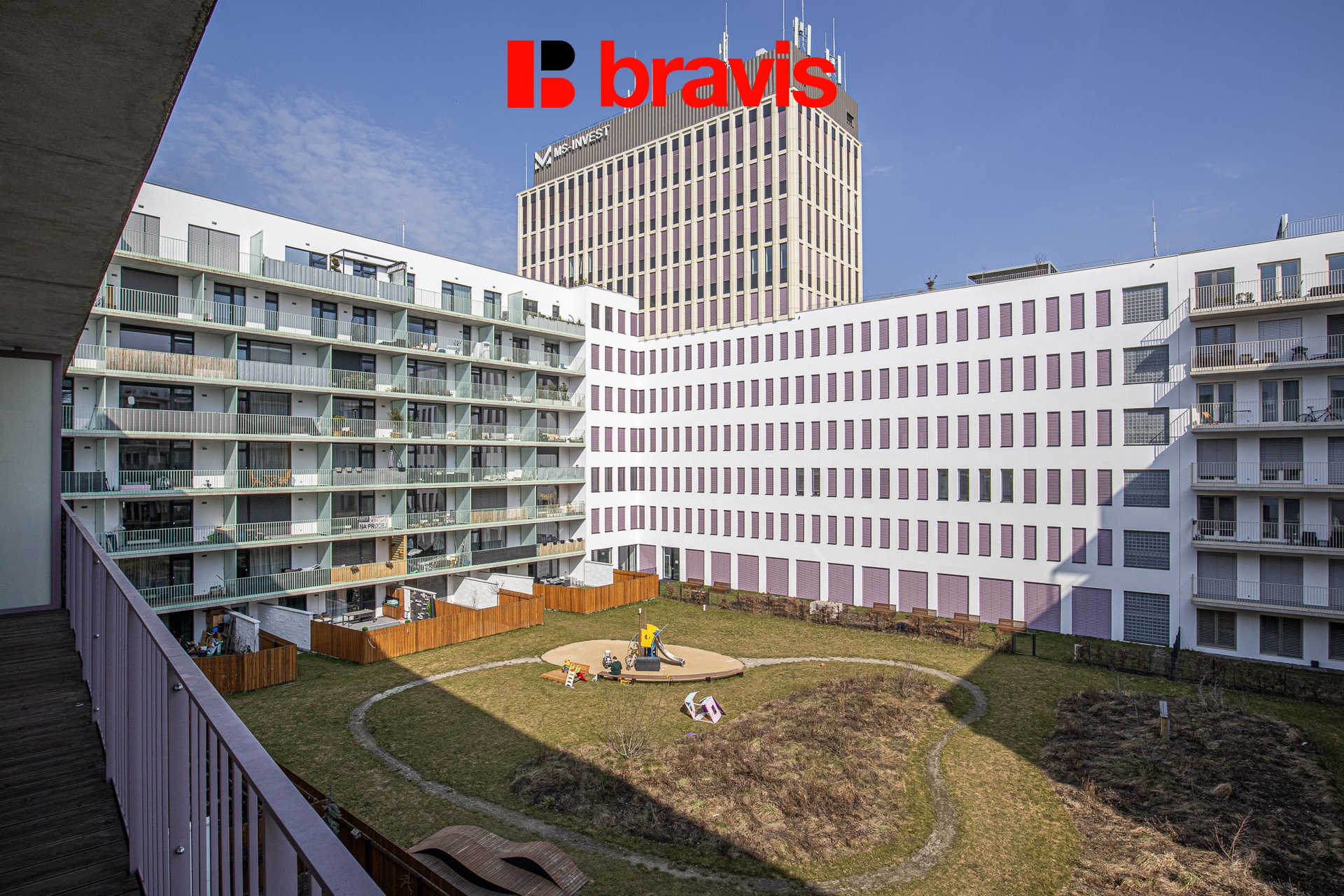 Byt o dispozici 3+kk o podlahové ploše 68,50 m2 a terasou 20,6 m2 je situovaný v 5. NP novostavby s výtahem a orientací do klidného zeleného vnitrobloku.