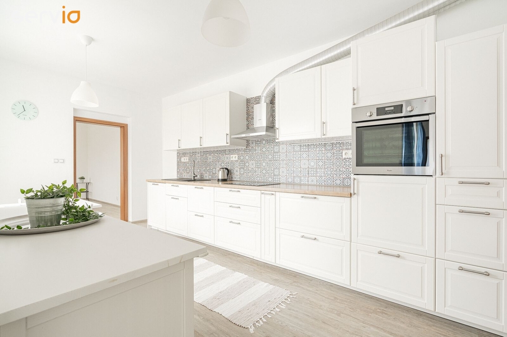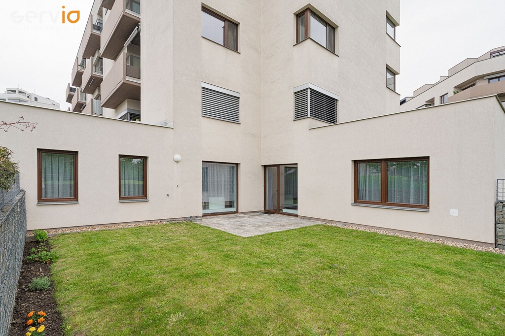 Ve výhradním zastoupení majitele nabízíme k prodeji novostavbu prostorného bytu 3+kk na ulici Kigginsova, v Brně - Slatině, se soukromou zahrádkou v osobním vlastnictví, o celkové užitné ploše 176 m2 (z toho zahrada 91 m2). Byt o ploše 80 m2 je umístěn v 1. NP cihlového domu s bezbariérovým přístupem a jeho součástí je sklep (cca 5 m2) a kryté parkovací stání v 1.PP domu kolaudovaného v roce 2017. V domě je výtah, kolárna - kočárkárna. Sklep se nachází v blízkosti bytu na stejném podlaží. Při vstupu do bytu je prostorná vstupní chodba, samostatné WC s umyvadlem, z chodby navazuje vstup do obytné části bytu, kde je umístěna kuchyně s jídelní částí. Byt se prodává částečně zařízený. KL včetně spotřebičů (indukce Bosch, el. trouba Whirlpool, nová digestoř, myčka a pračka Gorenje). Ostatní nábytek dle foto. Od jídelního stolu je krásný výhled do soukromé zahrádky, která je součástí bytu a vstup na ni je z obývací části navazující na kuchyň s jídelní částí. V zadní částí za kuchyní je ložnice. Vedle obývací části se nachází prostorná koupelna s vanou, místem pro pračku a za koupelnou je vstup do dalšího pokoje (může být pracovna, dětský pokoj, druhá ložnice). Byt je velmi hezky dispozičně řešený a prosvětlený, výhodou je soukromá zahrádka s terasou z dlažby a trávníkem, vývod na vodu a el. zásuvka, soukromí zajišťují ozdobné gabiony.