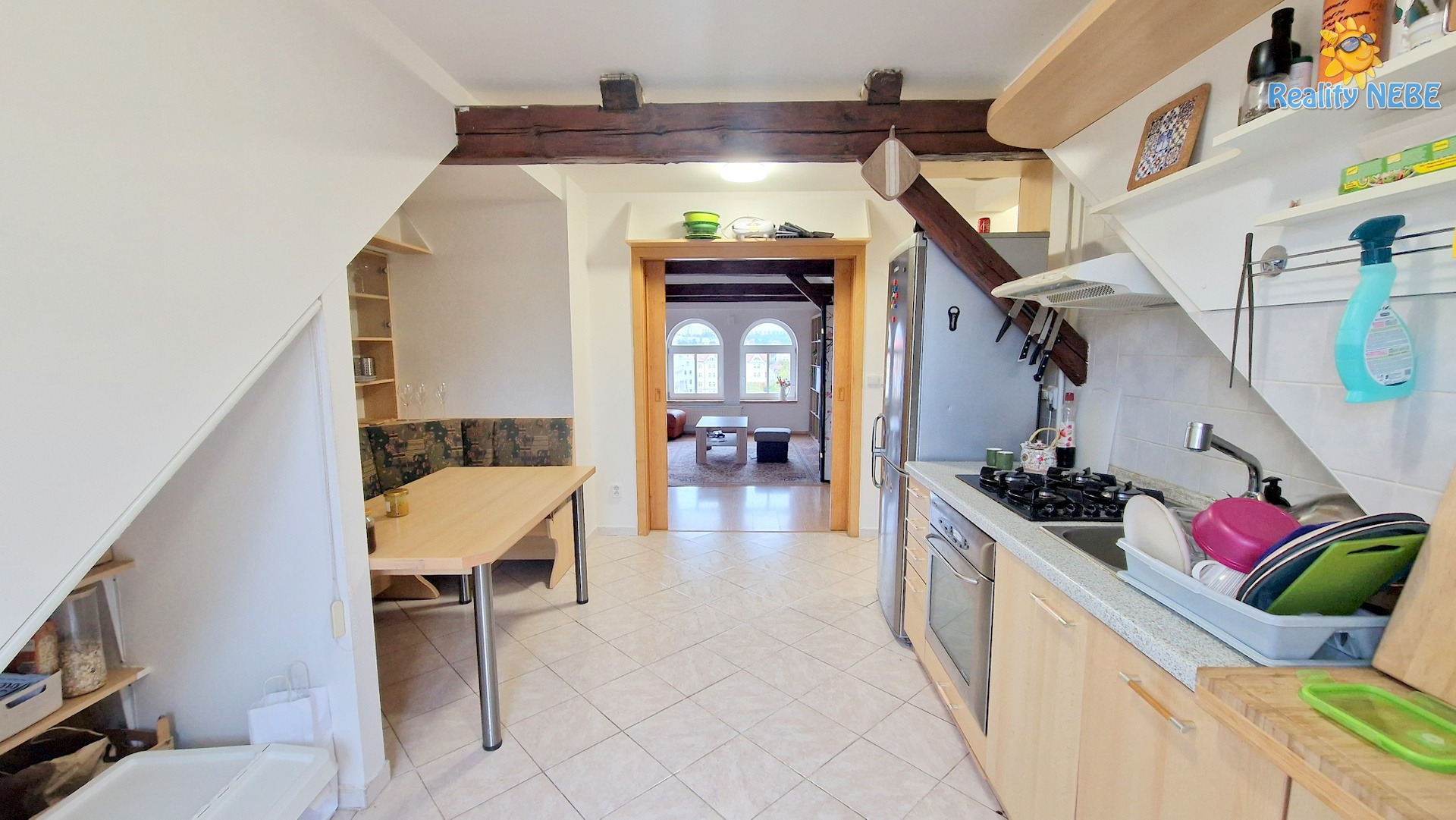 Nabízíme k prodeji atraktivní půdní byt v 3. patře rohového domu na Slovanském náměstí / Skácelova 2a, Brno - Královo Pole.