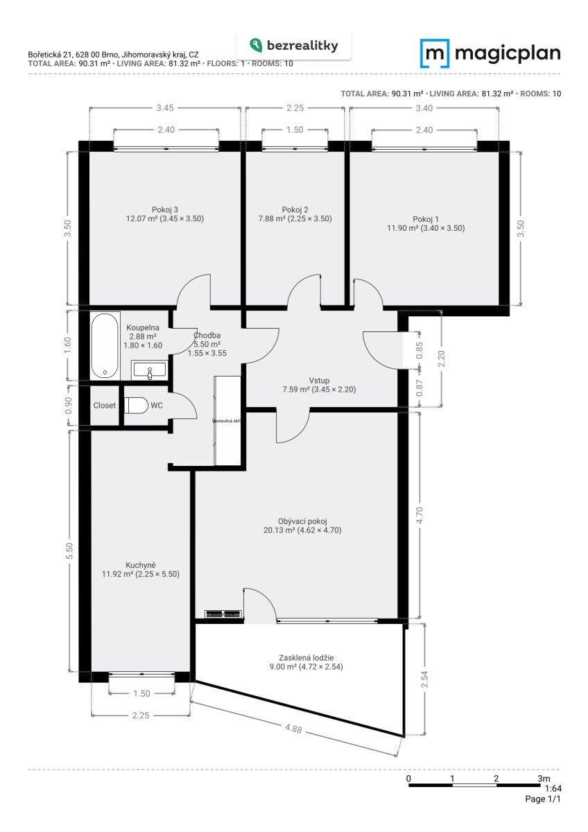 Z obývacího pokoje je vstup na prostornou zasklenou lodžii (9 m²).