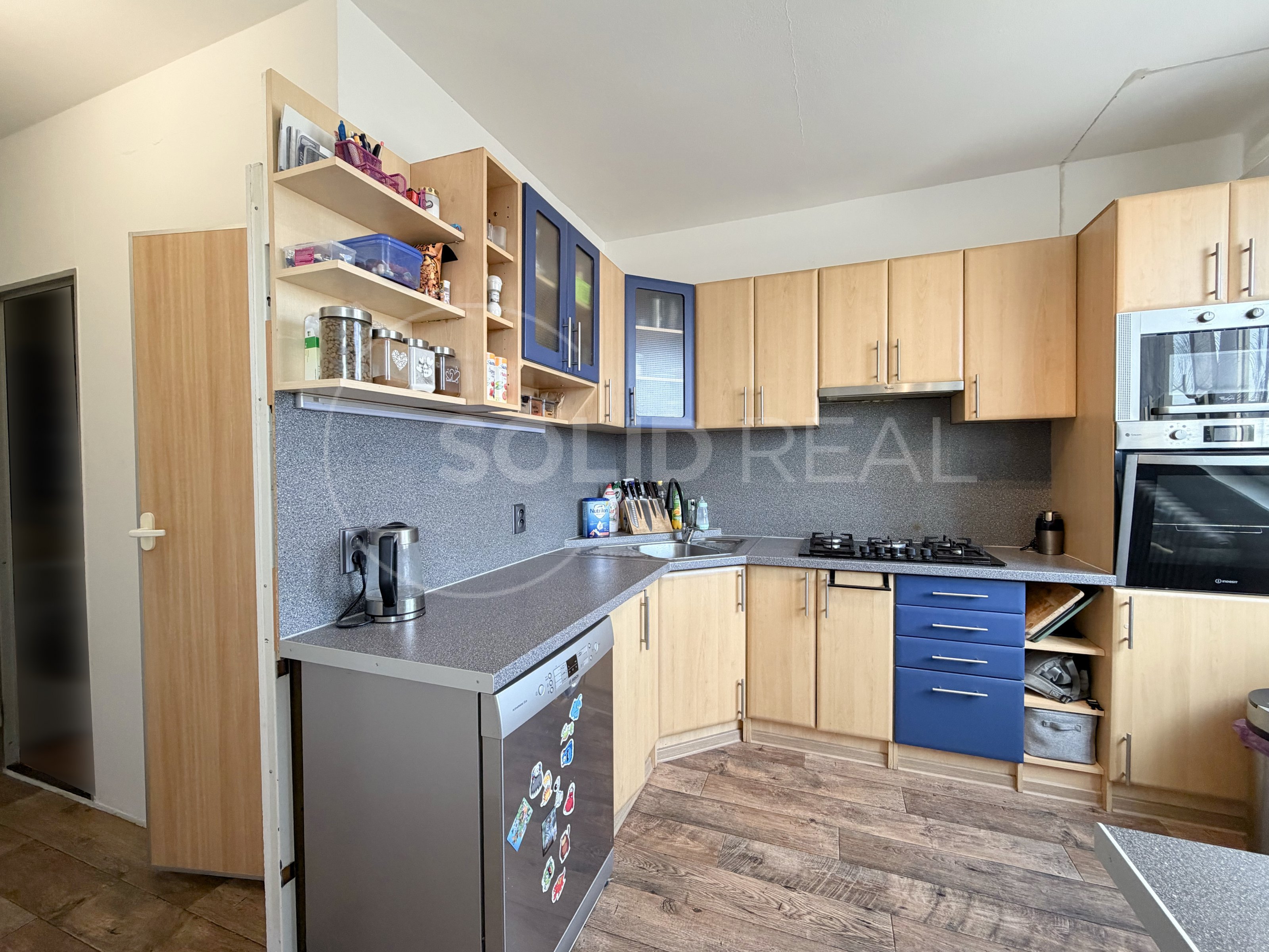 • Interiér: V bytě byla před dvěma lety instalována moderní kuchyňská linka a položena nová podlaha. Interiér je čistý, světlý a vkusně udržovaný.