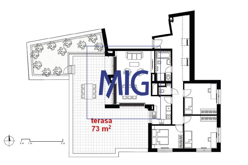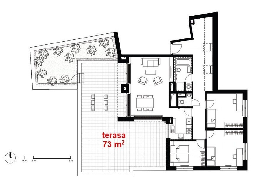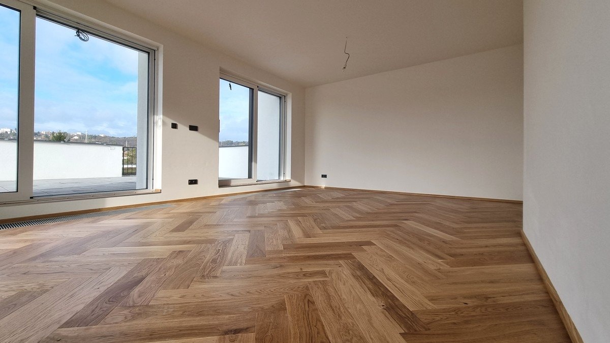 Zkolaudovali jsme pro Vás unikátní byt 4+kk o ploše 114 m2 (terasu nepočítaje), který zaujímá celé nejvyšší podlaží novostavby domu na Fryčajově ulici. Díky jeho umístnění v domě jsou z tohoto bytu a z jeho prostorné sedmdesátimetrové terasy otevřené výhledy na jih a západ, do parků a zahrad oblíbené brněnské lokality Obřany. Unikátní velkorysá terasa je od ulice odstíněna hmotou budovy a poskytne tak ničím nerušenou intimitu. Pohodlný a moderní byt disponuje třemi ložnicemi a bohatě proskleným obývacím pokojem o ploše 37 m2.