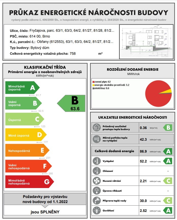 Kvalitní zateplení domu, včetně izolačních trojskel, a společná plynová kotelna zaručují nízké náklady na bydlení. V developerském projektu Fryčajka vzniklo pouhých 9 bytových jednotek, které jsou doplněny garážovými stáními v suterénu domu.