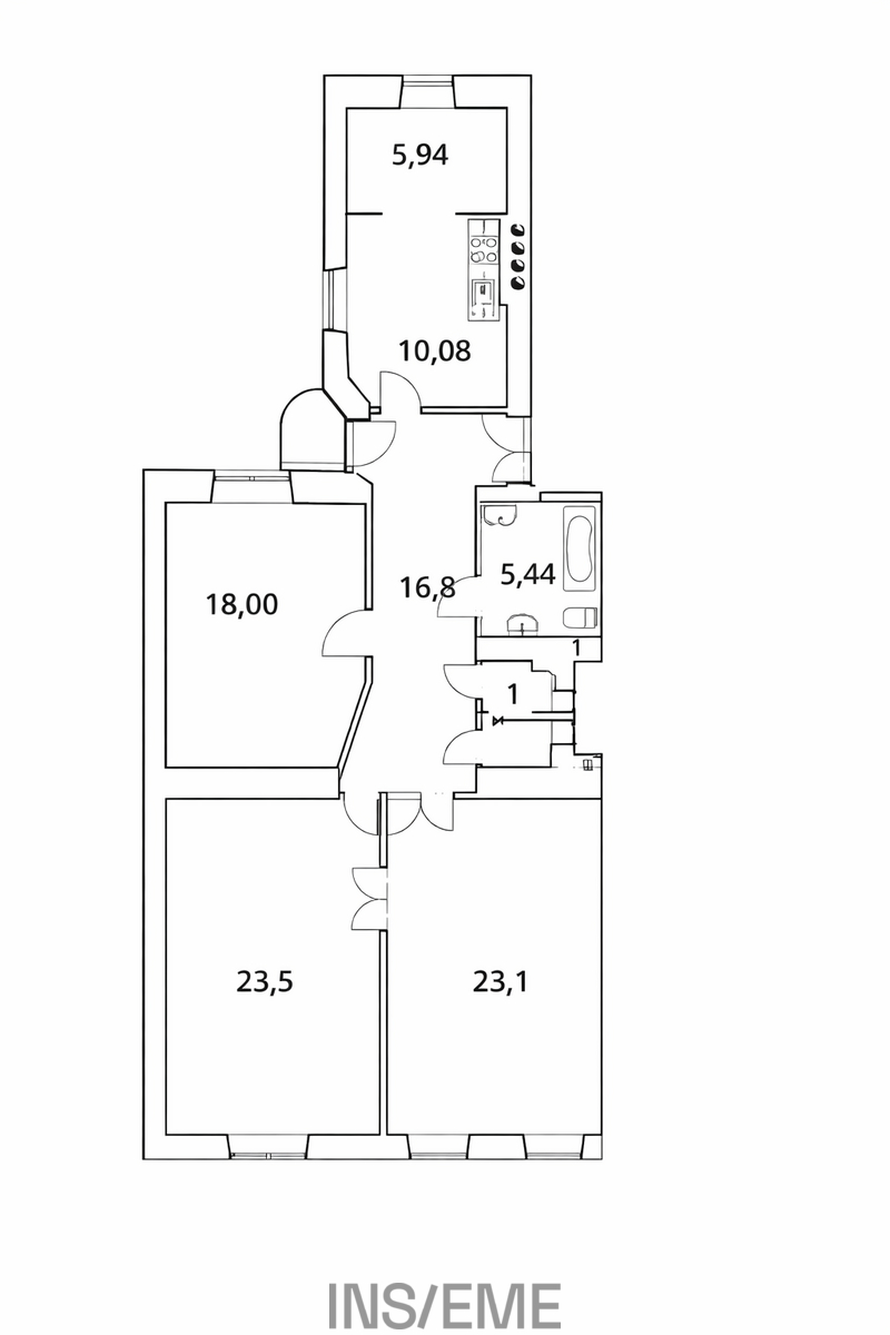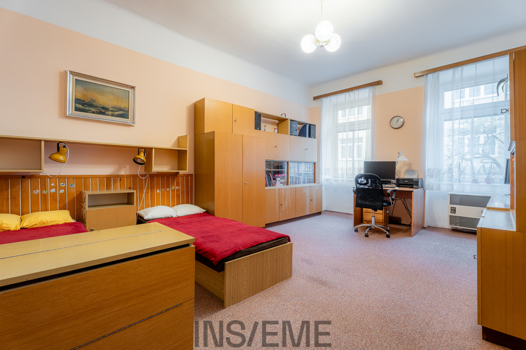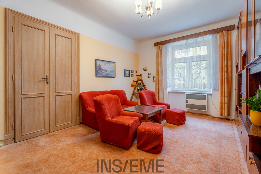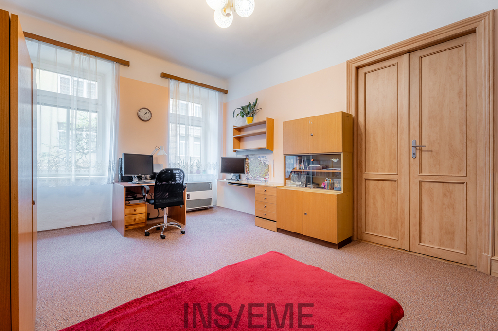 Interiér zaujme svou vzdušností a nadstandardními rozměry – vysoké stropy, velkorysé místnosti a elegantní dispoziční řešení vytvářejí příjemnou atmosféru. Dispozice bytu nabízí dvě ložnice, prostorný obývací pokoj a samostatnou kuchyni, což zajišťuje dostatek prostoru jak pro rodinné bydlení, tak pro komfortní městský život.