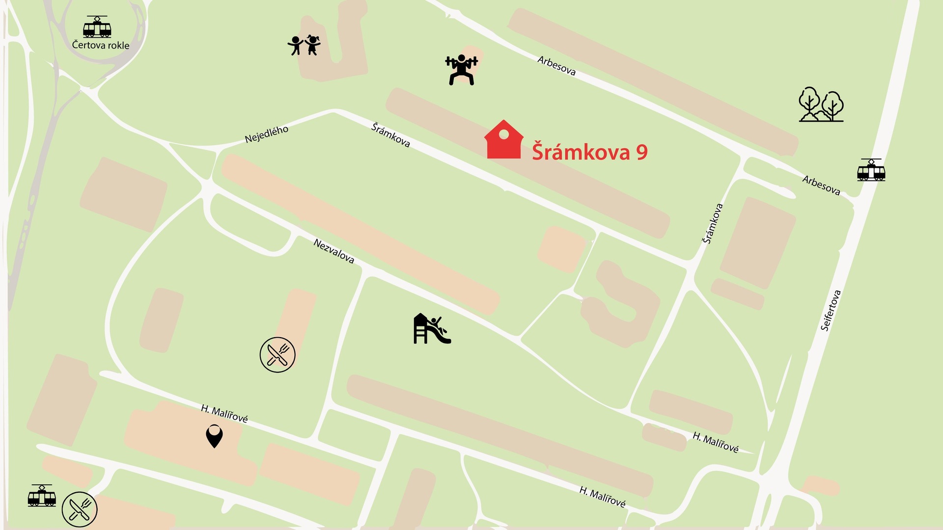 Lokalita je dalším velkým lákadlem – dům se nachází v oblíbené městské části Lesná, v těsné blízkosti přírodní lokality Čertova rokle, kde můžete vychutnávat procházky a klidné chvíle v přírodě. Současně je veškerá občanská vybavenost na dosah – školy, mateřské školy, obchody, lékárna, pošta i zastávky MHD, což zaručuje výbornou dostupnost do centra Brna.