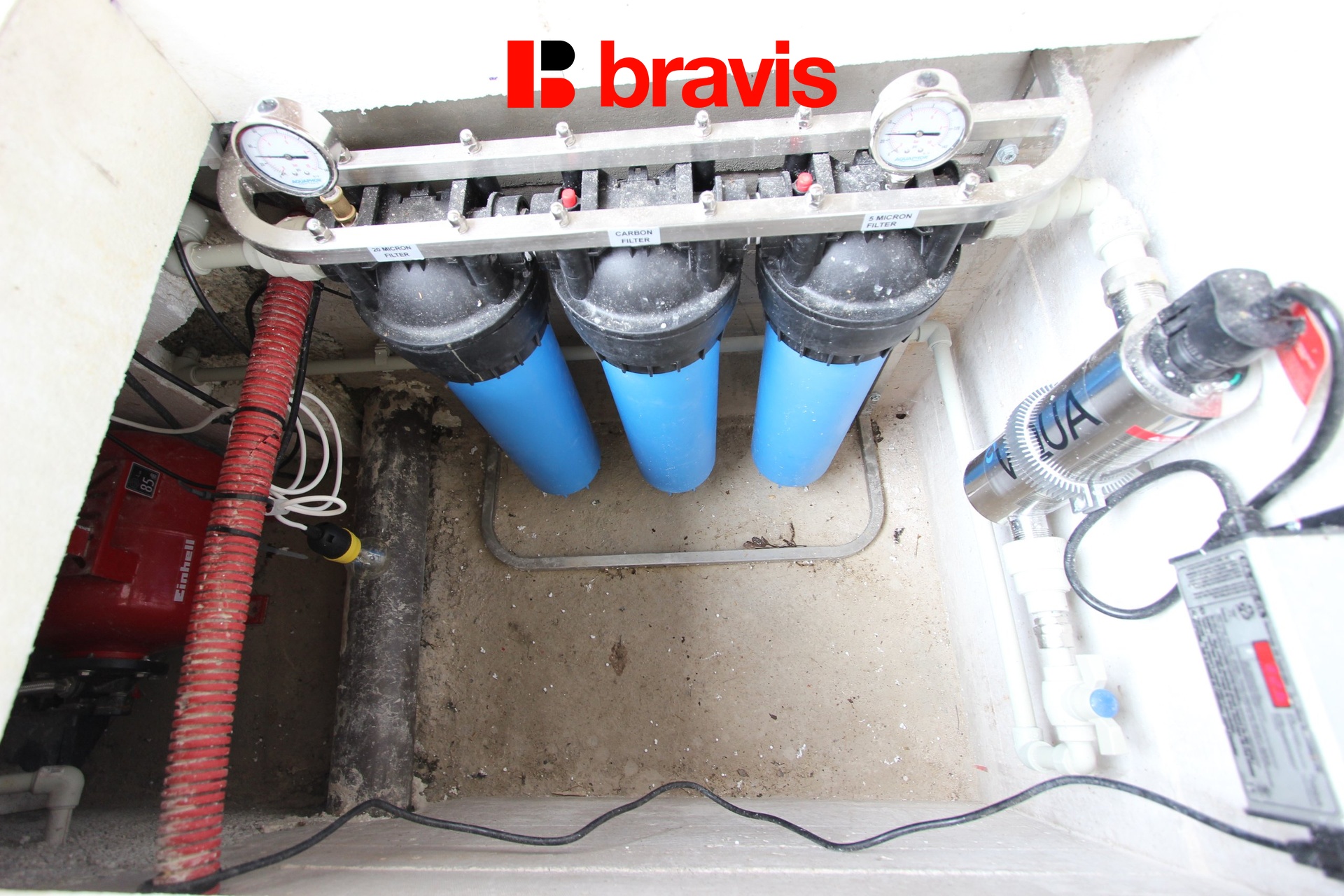 Pitná voda je řešená betonovou nádrží po terasou (5m3) přes speciální filtraci (využití dešťové vody) a čerpadlo s rozvodem do chaty. Odpad je svedený do jímky s přepadem. V chatě je samozřejmě rozvedená elektřina.