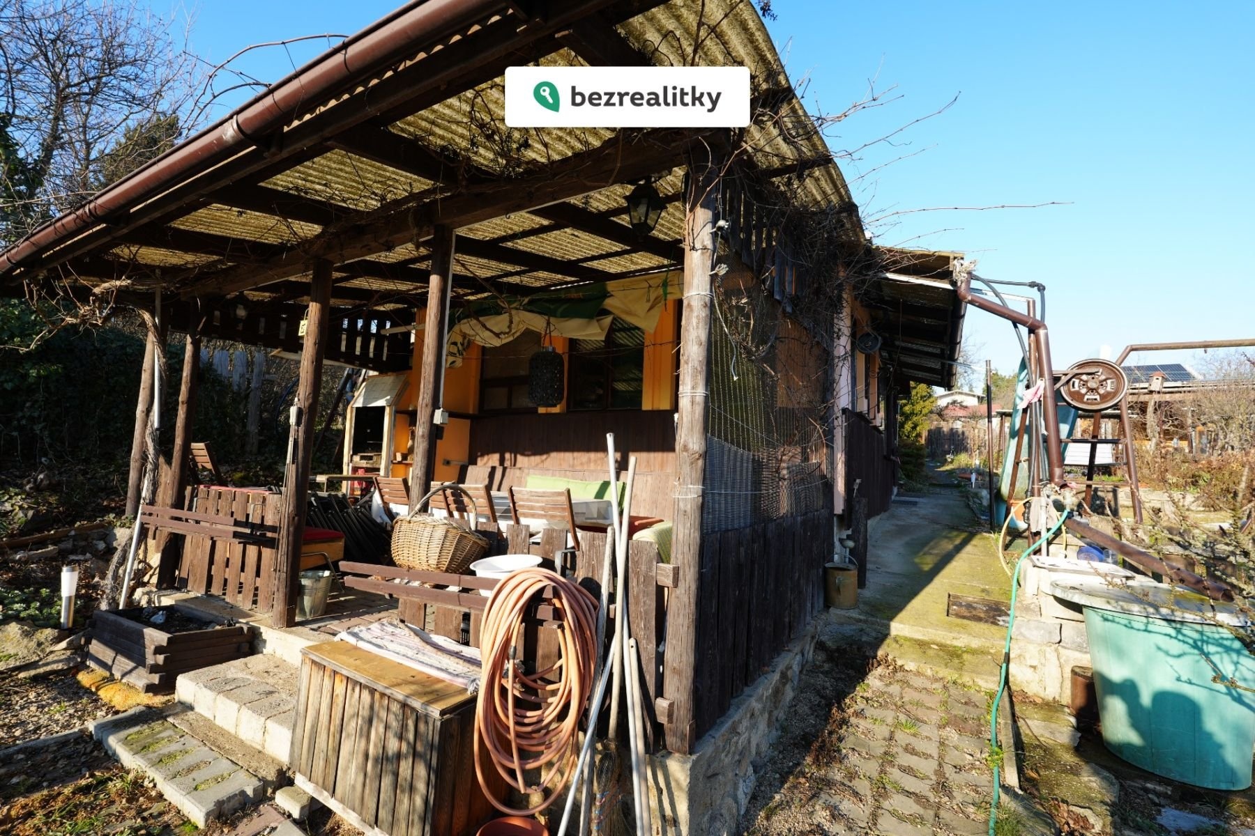 Zahrada a vyžití: Chata stojí na jihozápadně orientovaném, pronajatém pozemku o rozloze 490 m² .(stabilní dlouhodobý pronájem, nízký roční poplatek v zahrádkářské oblasti).