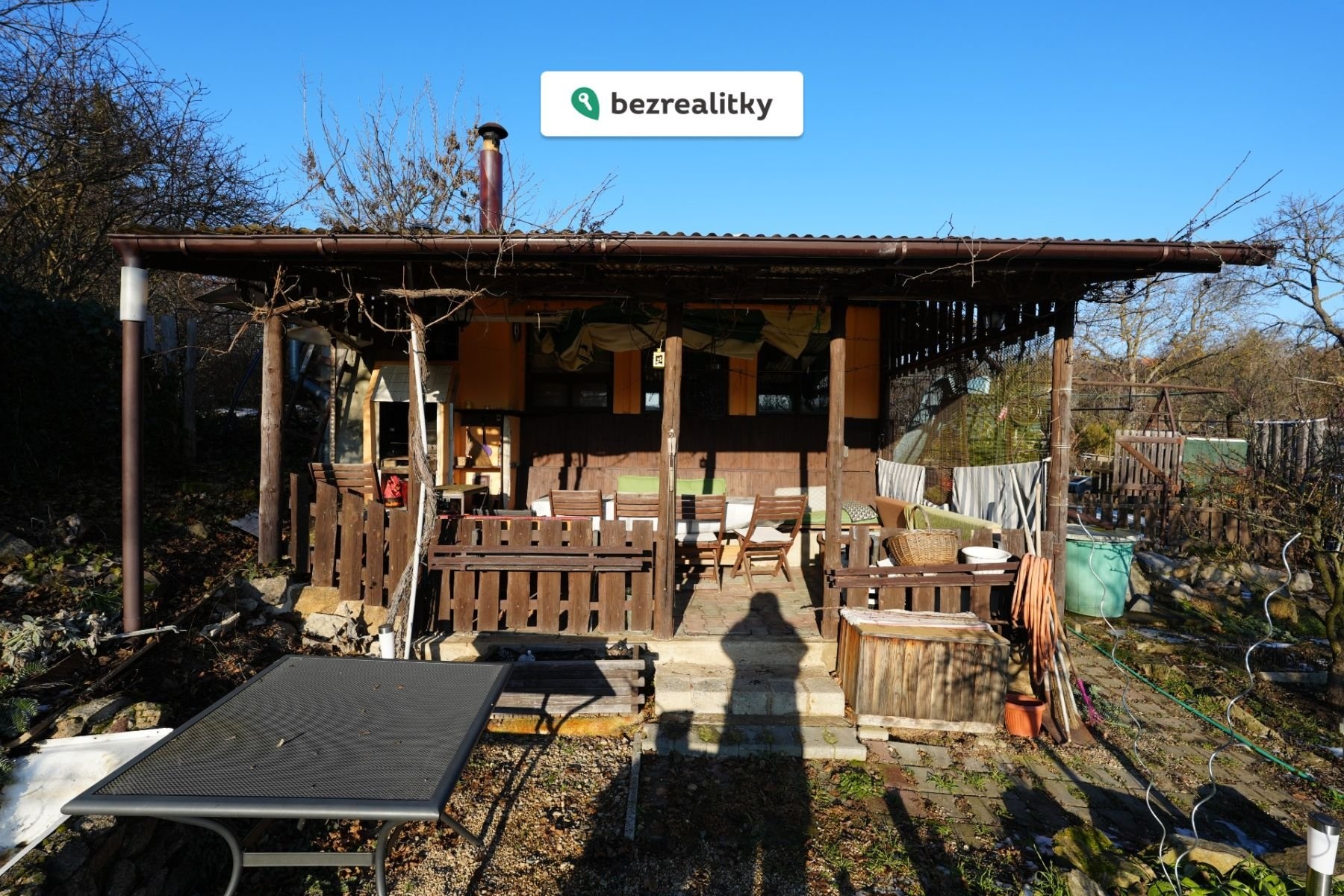Zimní provoz: Díky zateplení a krbovým kamnům je chata skvěle využitelná i pro prodlouženou sezónu a zimní víkendy. Pro tyto účely je vybavena nádržemi na dešťovou vodu (přes 1 kubík) a velkou výhodou je celoročně tekoucí studánka vzdálená jen 10 minut chůze.