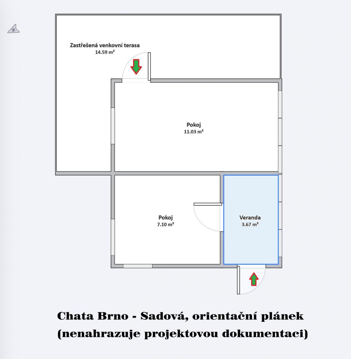 Nabízíme k prodeji útulnou chatku s č.ev. o zastavěné ploše 23 m2, ideální pro ty, kteří hledají klidné místo k relaxaci, přitom se skvělou dostupností do centra města. Chata se nachází v oblíbené lokalitě Sadová, okres Brno-město, na celkově oploceném pozemku o rozloze 1071 m2. Součástí chatky je prostorná zastřešená terasa o velikosti 15,6 m2 ideální pro venkovní posezení a vstupní veranda 3,6 m2.