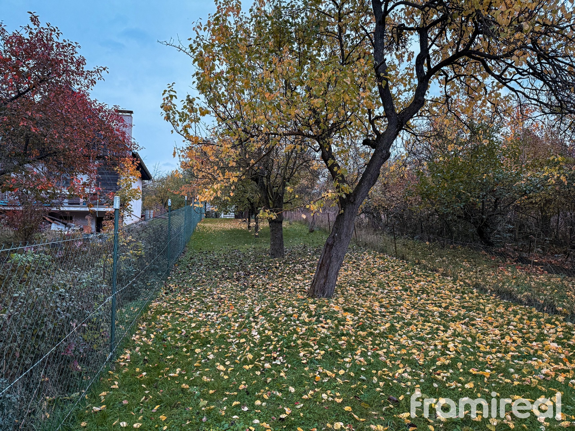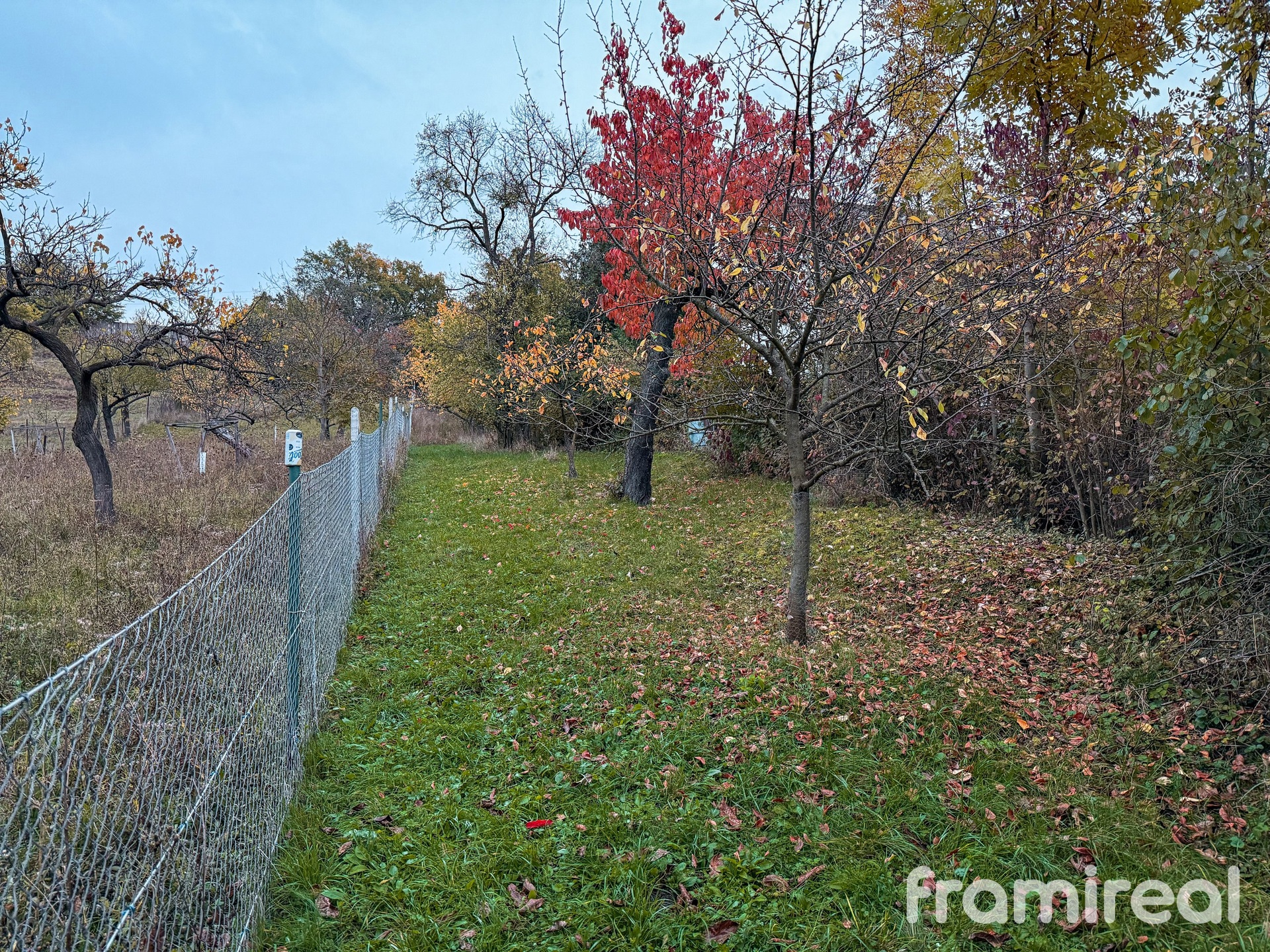 Pozemek má šířku přibližně 6 metrů a délku 235 metrů. Zahrada je travnatá, mírně svažitá a orientovaná na jihozápad, což zaručuje dostatek slunce po celý den. Nachází se zde několik vzrostlých a plodících ovocných stromů. Celý pozemek je oplocen ze všech stran, s příjezdem po hlíněné cestě. Vjezd na zahradu je umožněn přes bránu a parkování je možné přímo před pozemkem nebo po úpravě i na něm.