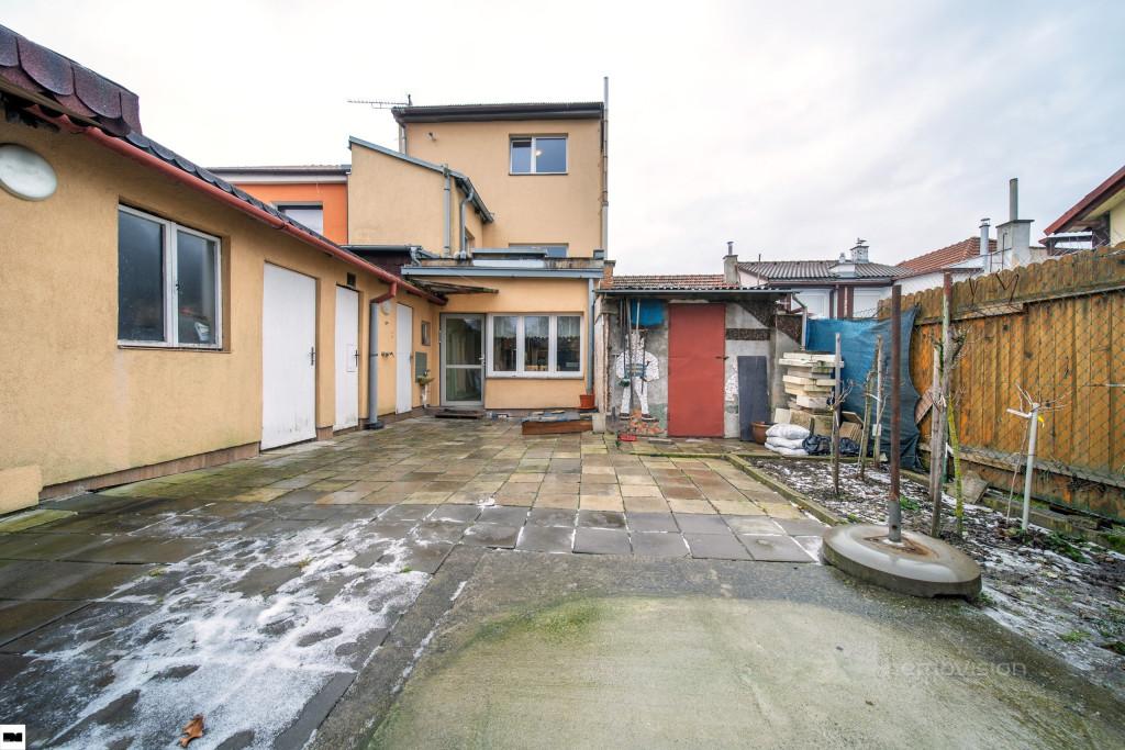 Celková zastavěná plocha a nádvoří činí 182 m². Součástí domu je uzavřený dvůr, který poskytuje příjemné zázemí pro posezení, relax i praktické využití. Nechybí zde dílna a skladovací prostory, které se vždy hodí.