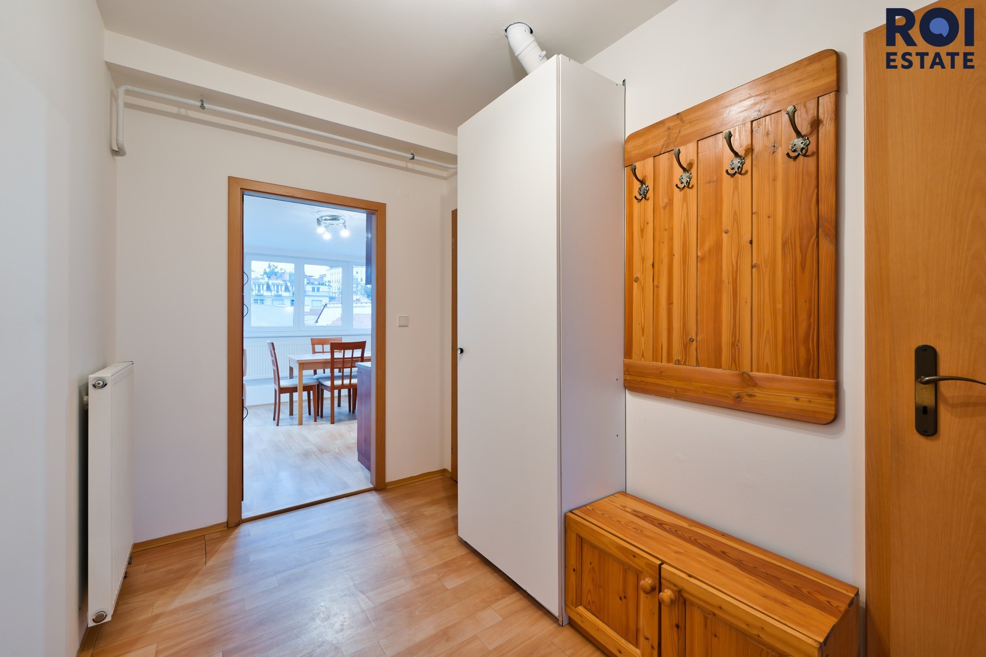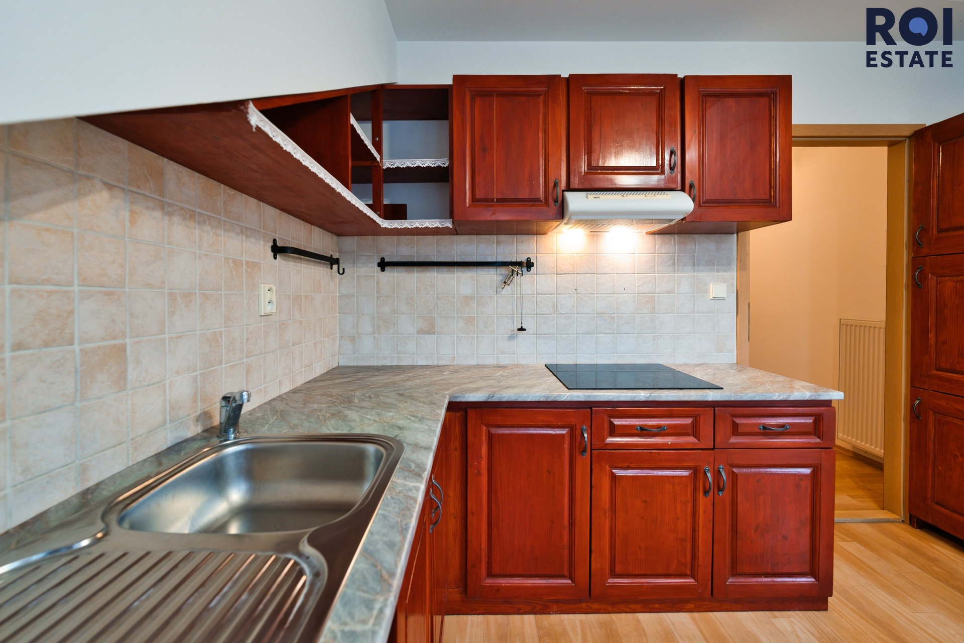 Dispozice 1+1 nabízí prostorný obývací pokoj/ložnici, samostatnou kuchyň, koupelnu s vanou a vstupní chodbu. Byt je čistý, udržovaný a připravený k okamžitému bydlení, ale zároveň nabízí prostor pro vlastní úpravy.