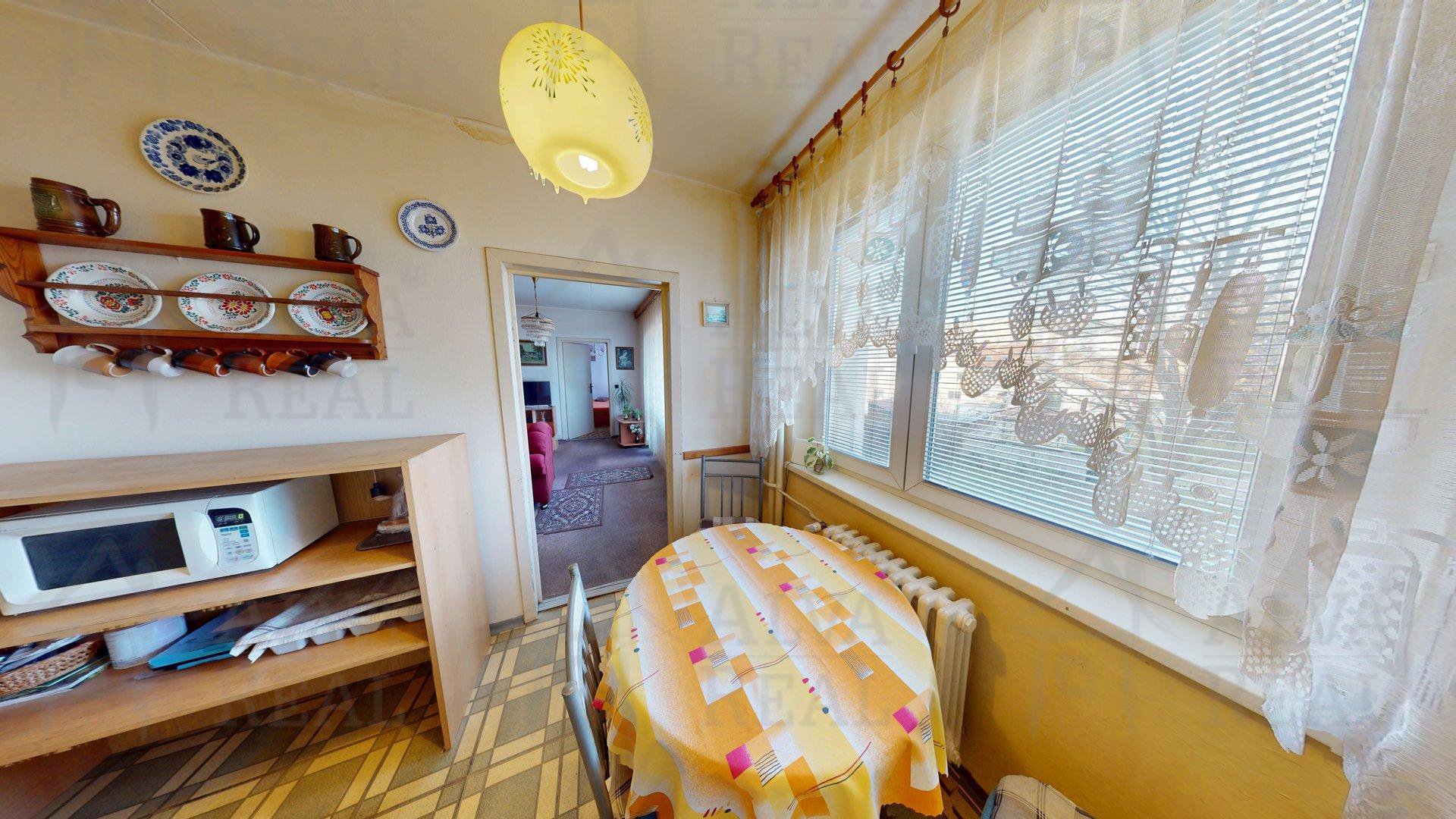Dispozice: Obývací pokoj 19,90 m²; ložnice 12,00 m²; pokoj 12,00 m²; kuchyně 8,60 m²; koupelna 2,50 m²; WC 1,4 m²; komora 0.9 m²; spíž 0,8 m²; chodba 12,60 m². Velkou výhodou je prostorná lodžie o výmeře 4,7 m², která nabízí prostor pro relax.