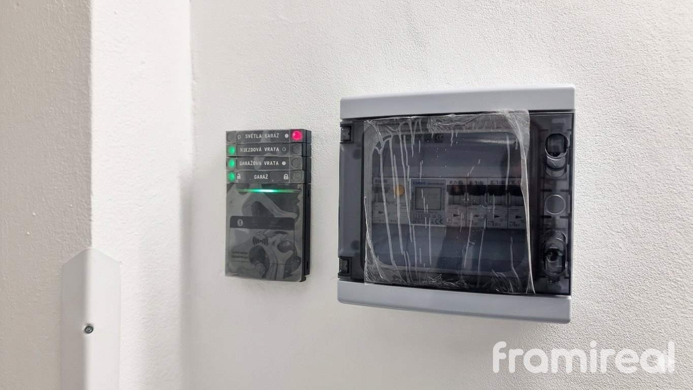 Interiér garáže o rozměrech 2,8 m x 6 m nabízí čisté, suché a světlé prostředí s novou výmalbou a výkonným LED osvětlením. Podlaha je osazena vysokozátěžovým modulárním systémem, který je protiskluzový, chemicky odolný a snadno udržovatelný. Bezpečnost celého prostoru zajišťuje vlastní alarm Jablotron s ovládací klávesnicí a signalizací stavu přímo uvnitř garáže. Kompletně nová je také elektroinstalace, která zahrnuje vlastní rozvaděč s elektroměrem a zásuvky na 230 V.