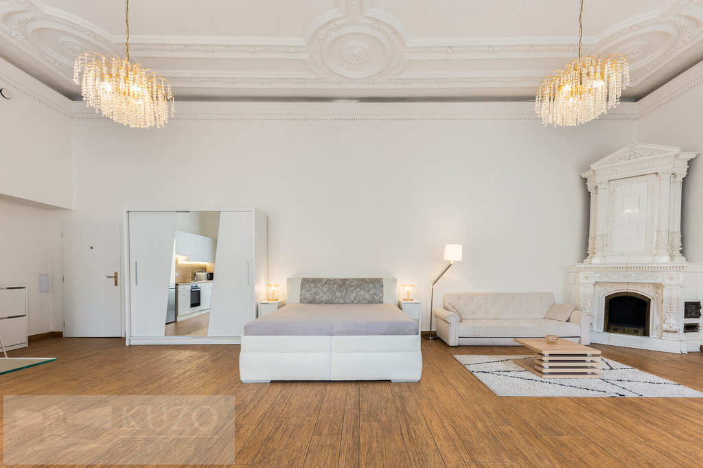 kompletní vybavení: kuchyňská linka s vestavěnými spotřebiči, kvalitní nábytek, křišťálové lustry – byt je připraven k okamžitému užívání.