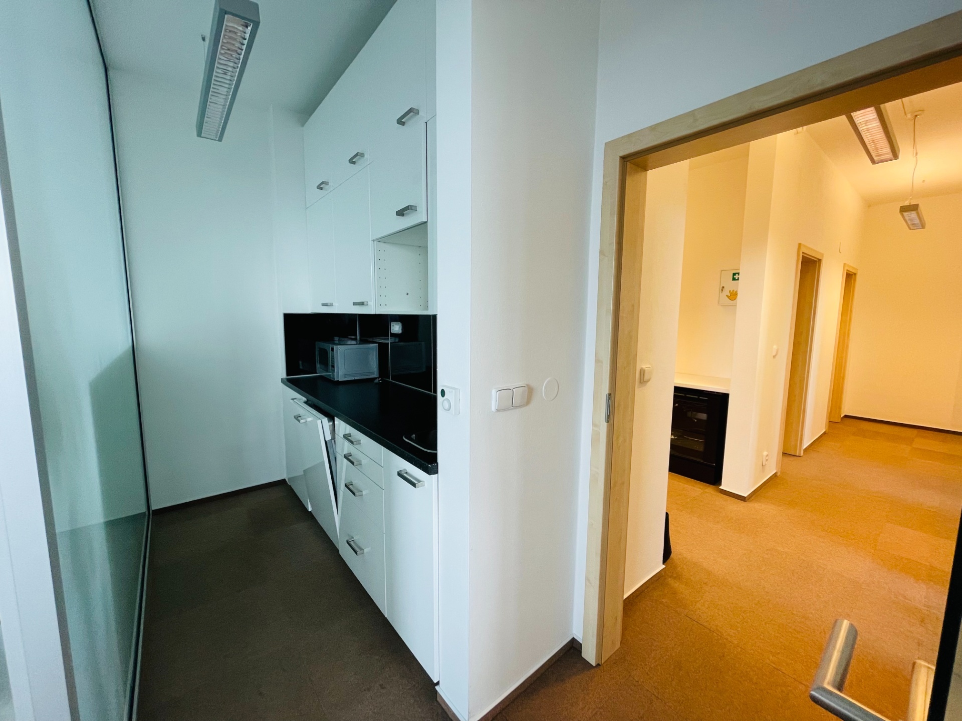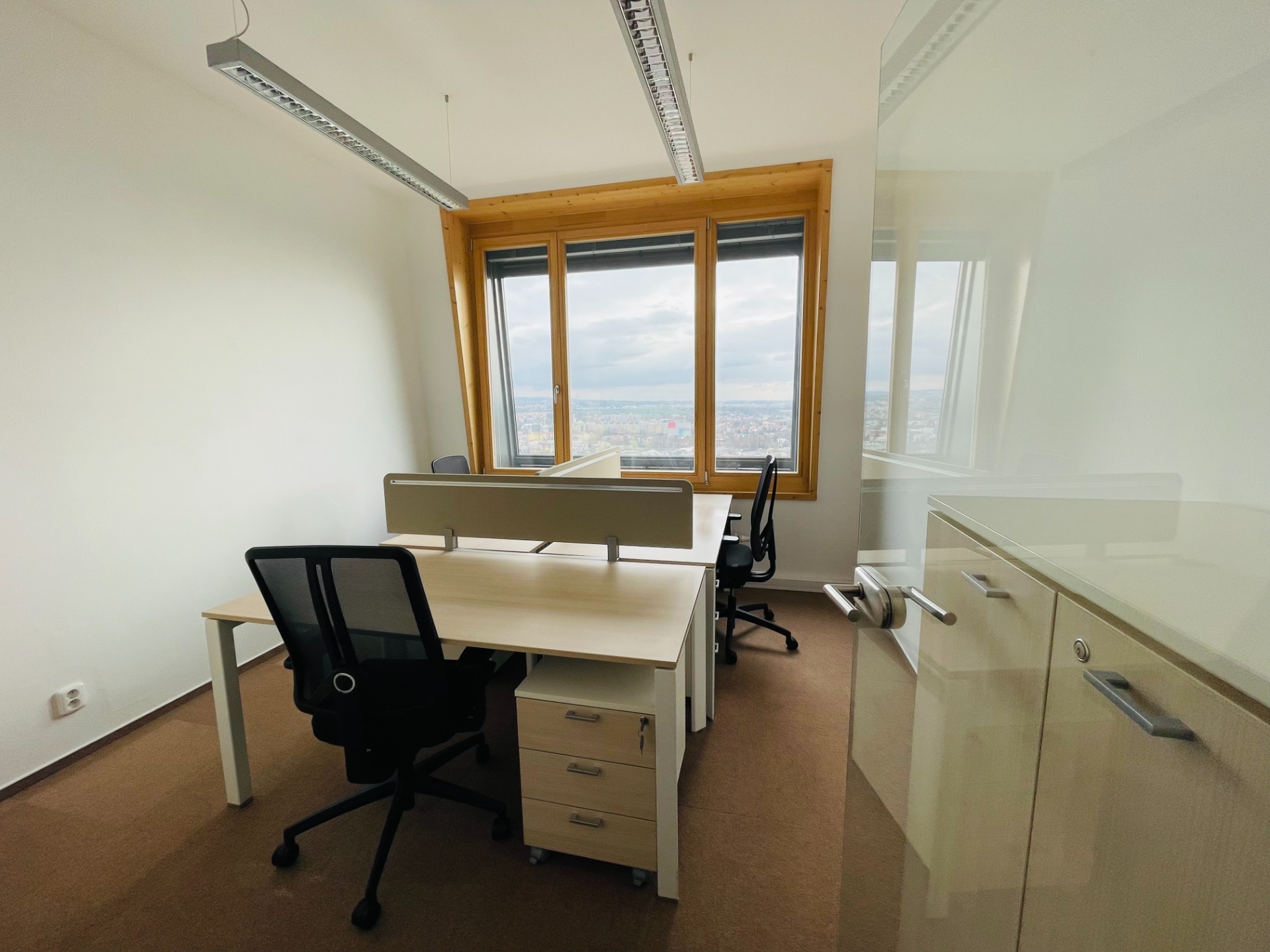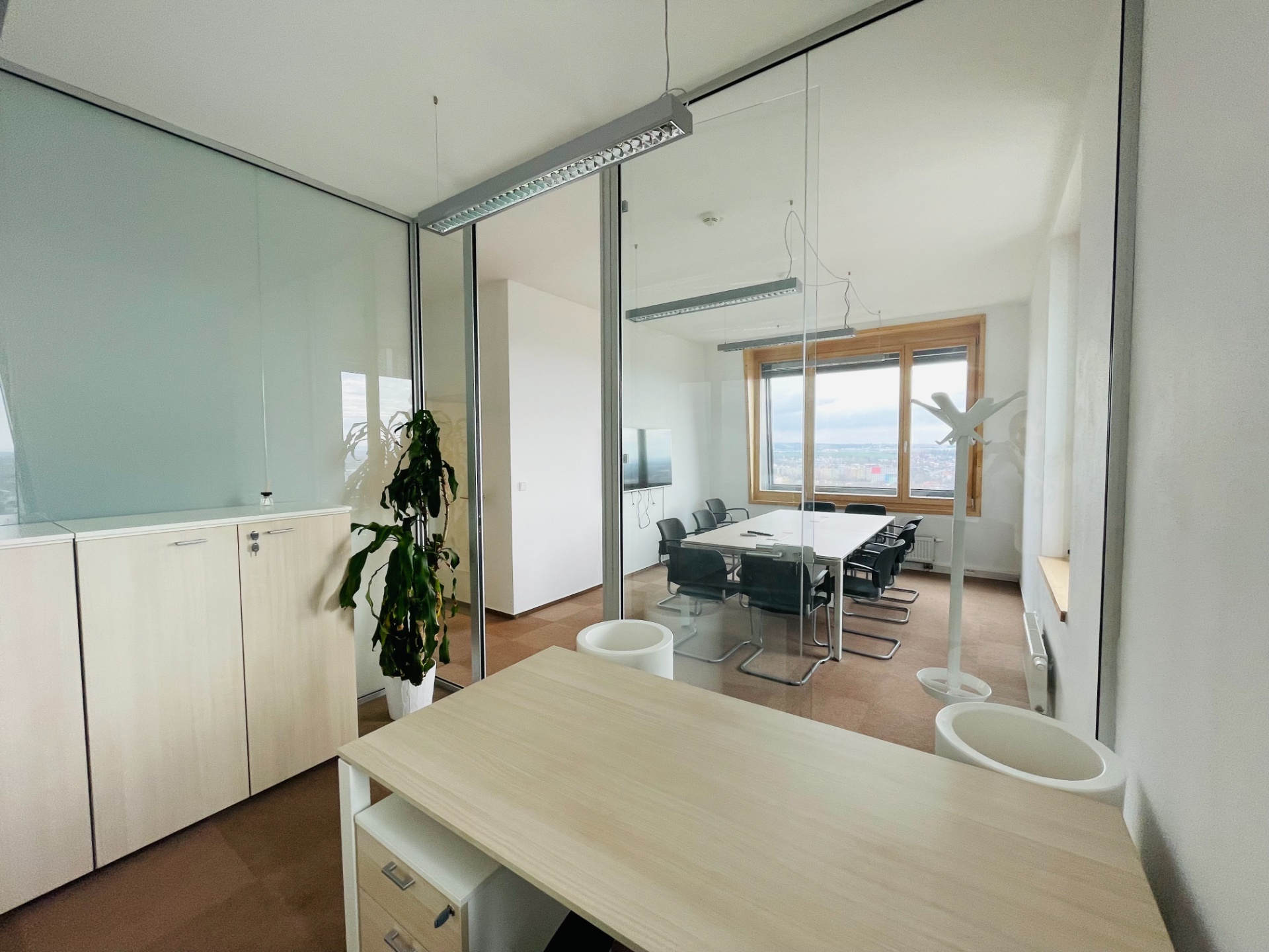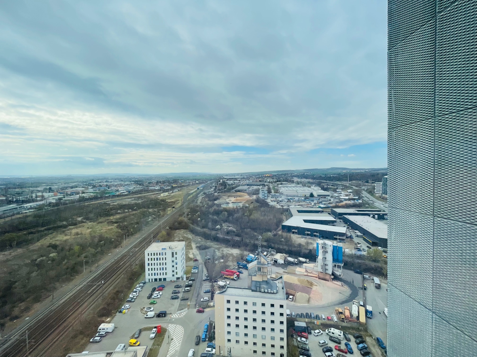 V zastoupení majitele nabízím exkluzivní prodej reprezentativní kanceláře ve 23. NP, s výhledem dosahujícím na Pálavu a to ve vyhledávané lokalitě, v prostorách nejvyšší budovy ČR - AZ Tower. Celková plocha kanceláře je 77 m², je rozdělena na čtyři místnosti, kuchyňský kout, koupelnu a WC (viz. přiložen půdorys).