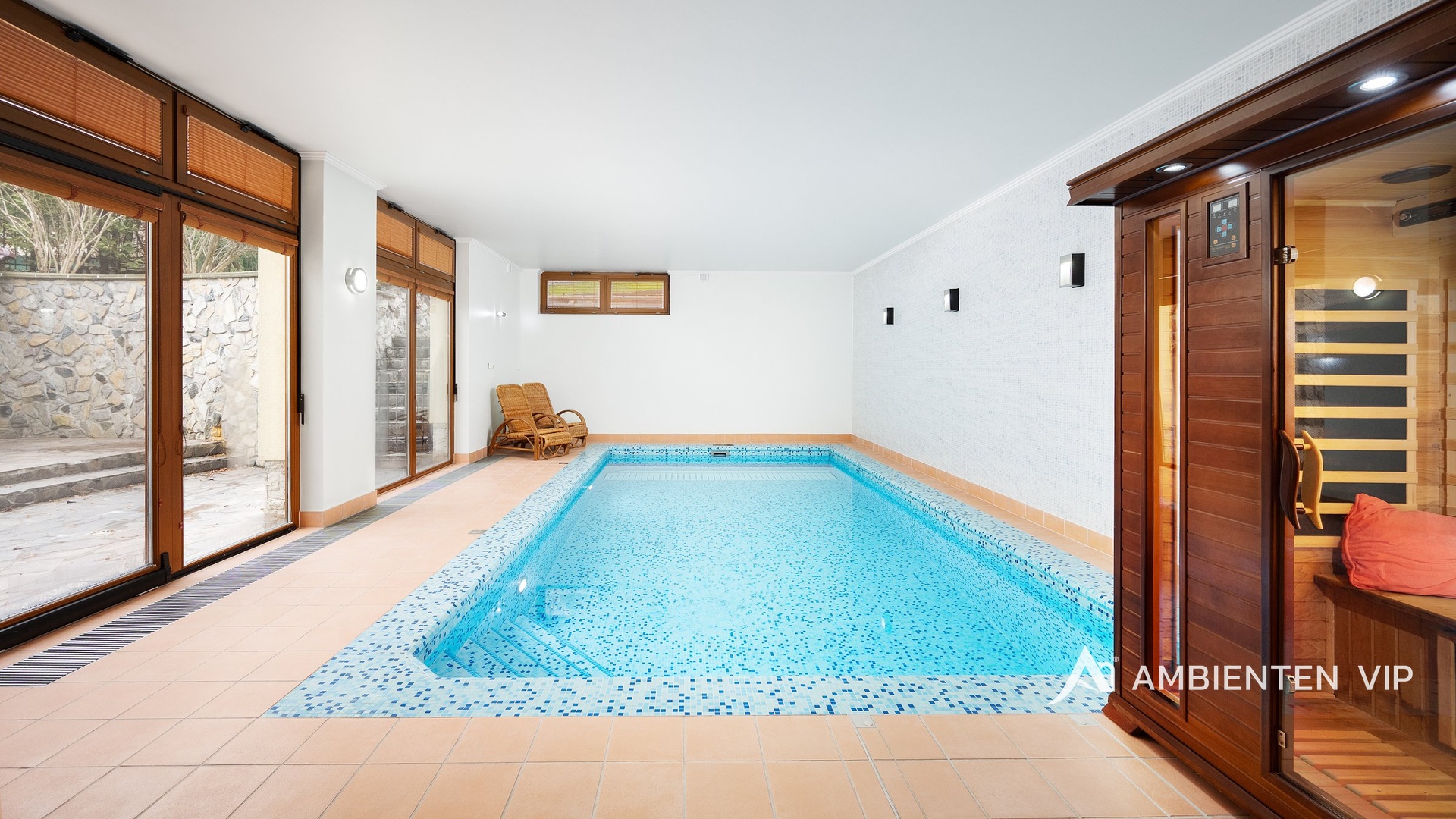 Prodej luxusní samostatně stojící vily 6+kk s garáží pro 2 vozy, wellness se saunou a bazénem, okras