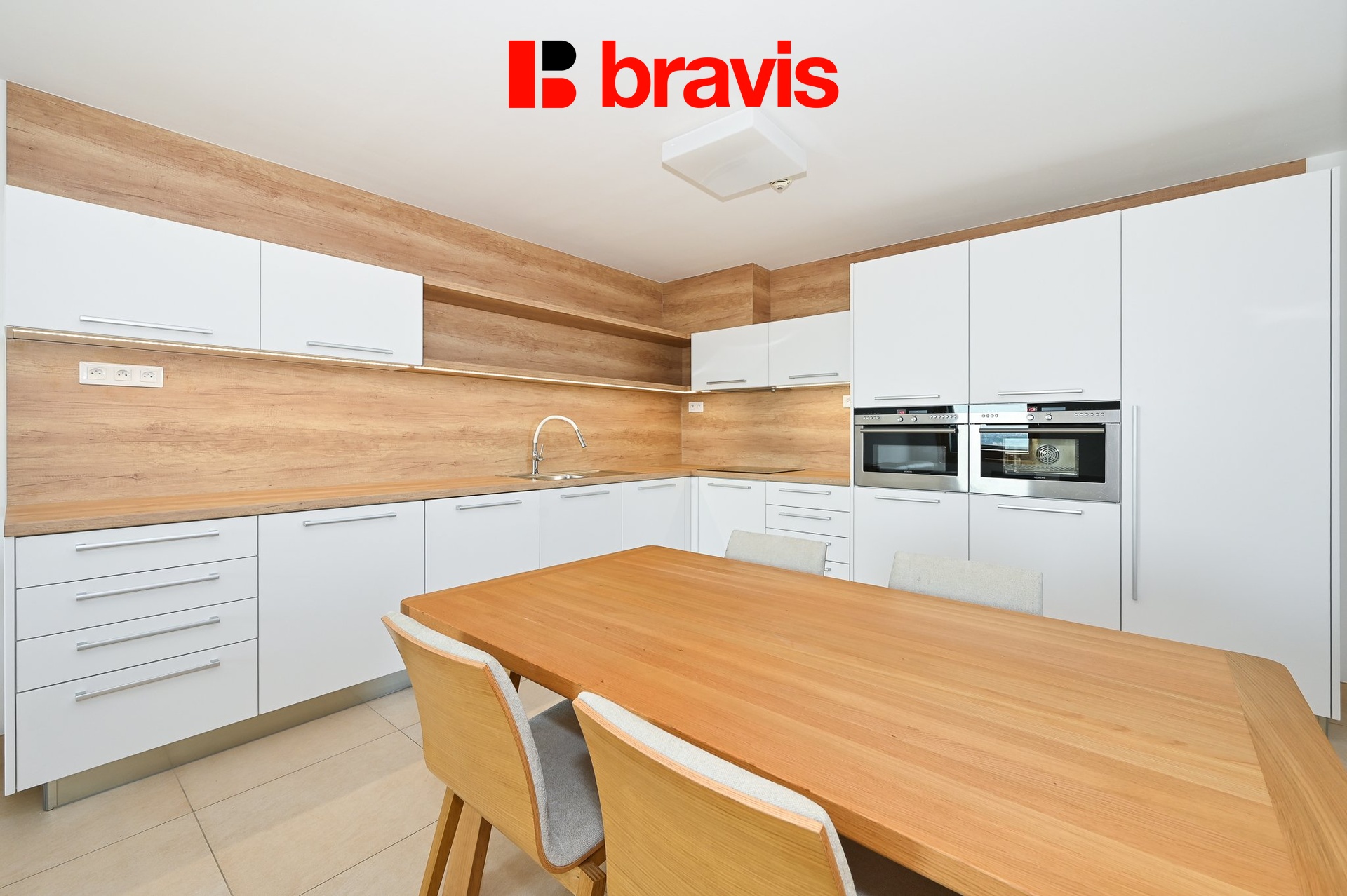 Apartmán o podlahové ploše 97 m2 poskytuje výjimečné podmínky pro bydlení, naprostý klid a jedinečný výhled na Brno a okolní krajinu. Dispozičně je tento apartmán řešen jako 3+kk a hlavní dominantu tvoří prostorná kuchyň s obývacím pokojem a přímým vstupem na terasu (12 m2), která slouží pro relaxaci či k posezení. Obytný prostor doplňují dva prostorné pokoje, nadstandardní koupelna se sprchovým koutem, samostatné WC a praktická šatna s úložným prostorem. Samozřejmostí jsou předokenní žaluzie a klimatizace v celém prostoru apartmánu, kterou lze regulovat pomocí moderních technologií.