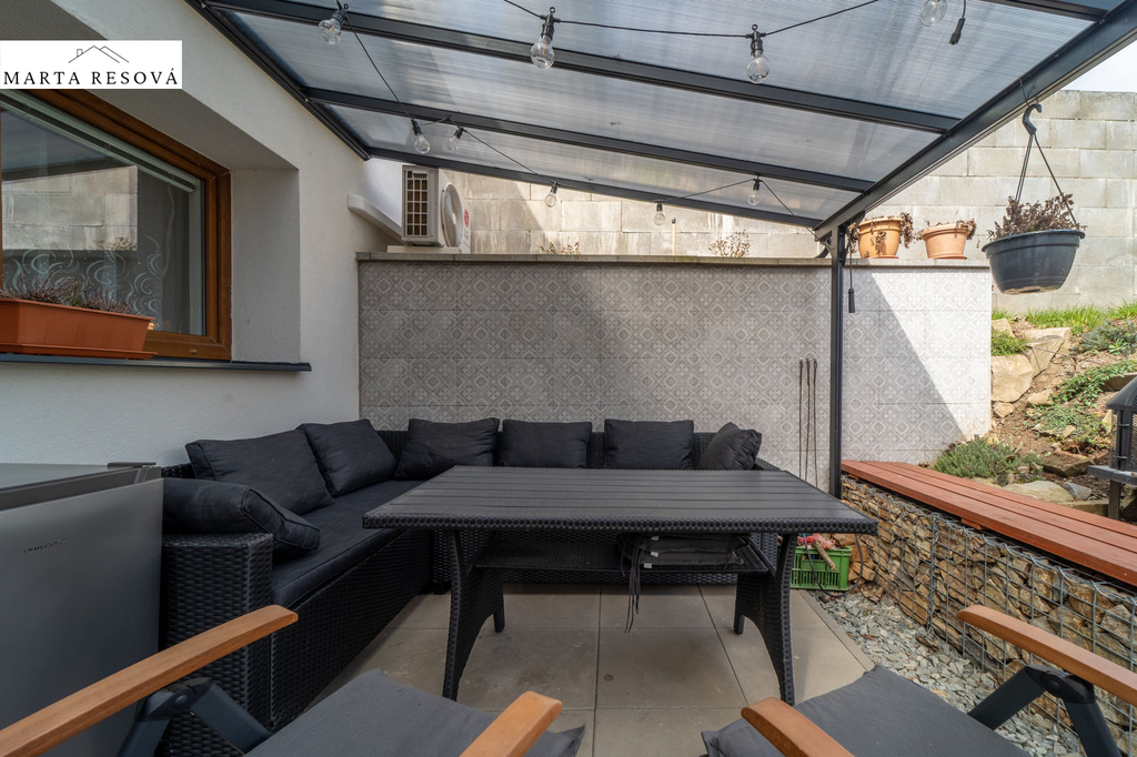 Terasa s pergolou: Perfektní místo pro ranní kávu nebo letní grilování za každého počasí.