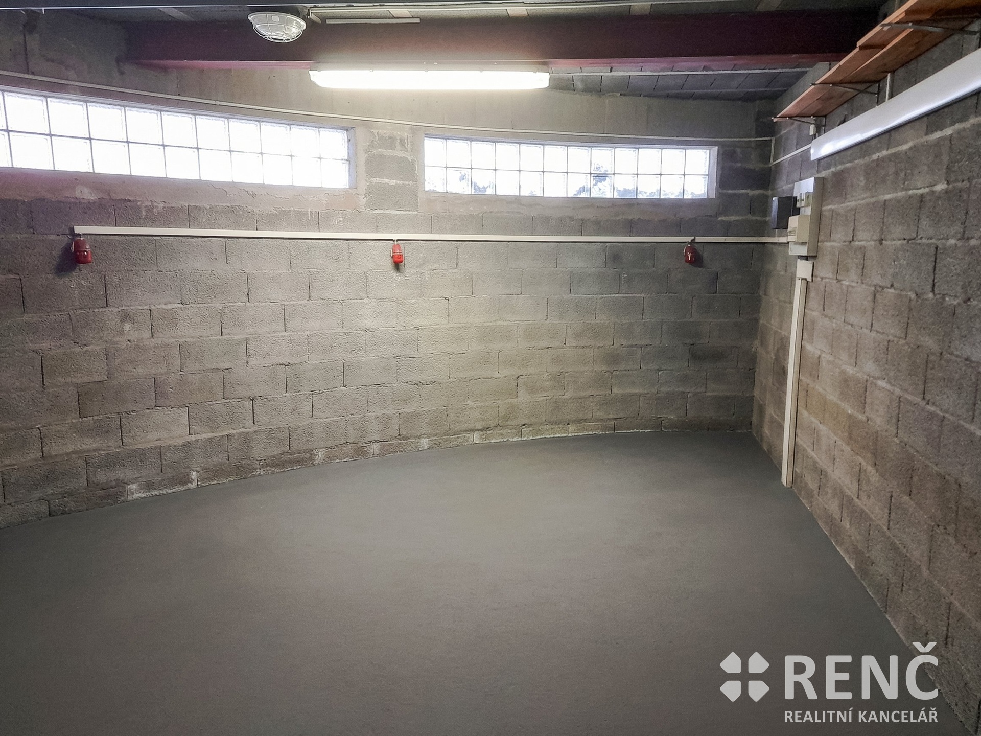 Garáž je ve výborném technickém stavu, je vybavena kvalitními sekčními vraty Hörmann na dálkové ovládání. Podlaha je betonová (nátěr) a prostor je prosvětlen okny ze skleněných tvárnic (luxfer).