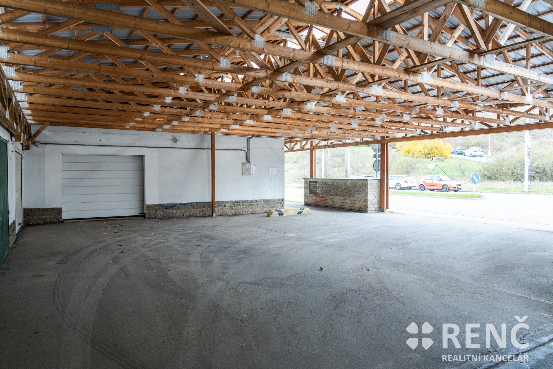 Výhodou je pohodlný vjezd přímo z ulice. Prostor před garáží je zastřešen.