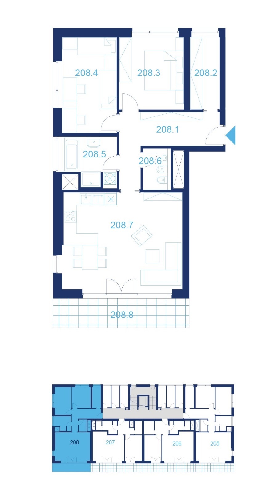 Celková užitná výměra bytu činí 103m2 (byt 88m2 + balkon 10m2 + komora 5m2). Budete okouzleni vnitřním uspořádáním, kde architekti mysleli na vše, co je potřeba ke spokojenému životu. Orientace bytu je na tři světové strany (V+Z+S), díky čemuž je byt pěkně prosvětlený a dobře větratelný. Okna jsou ve všech místnostech vč. koupelny.
