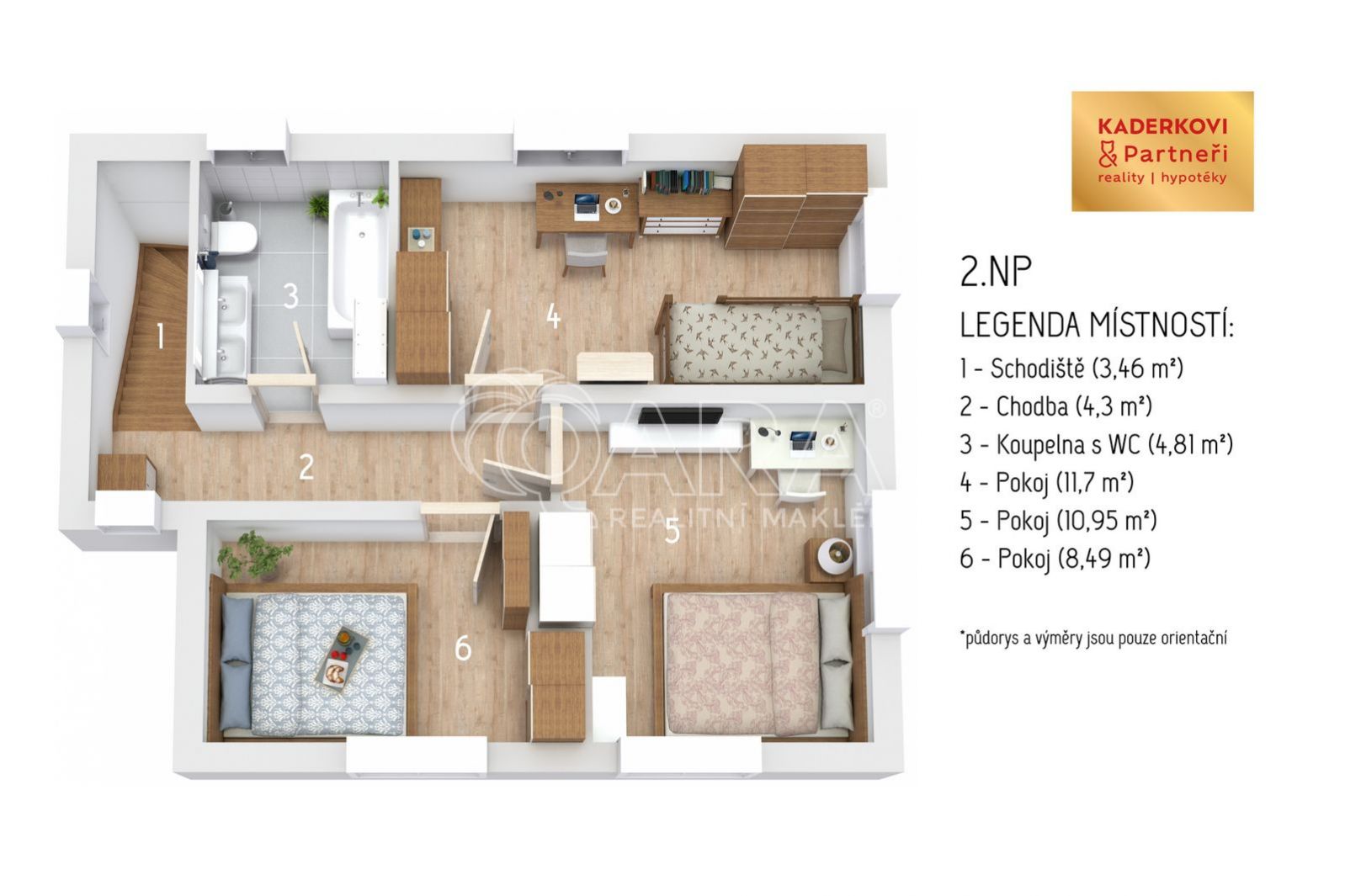 2. NP nabízí tři samostatné pokoje a druhou koupelnu s toaletou ideální uspořádání pro rodinu i práci z domova.
