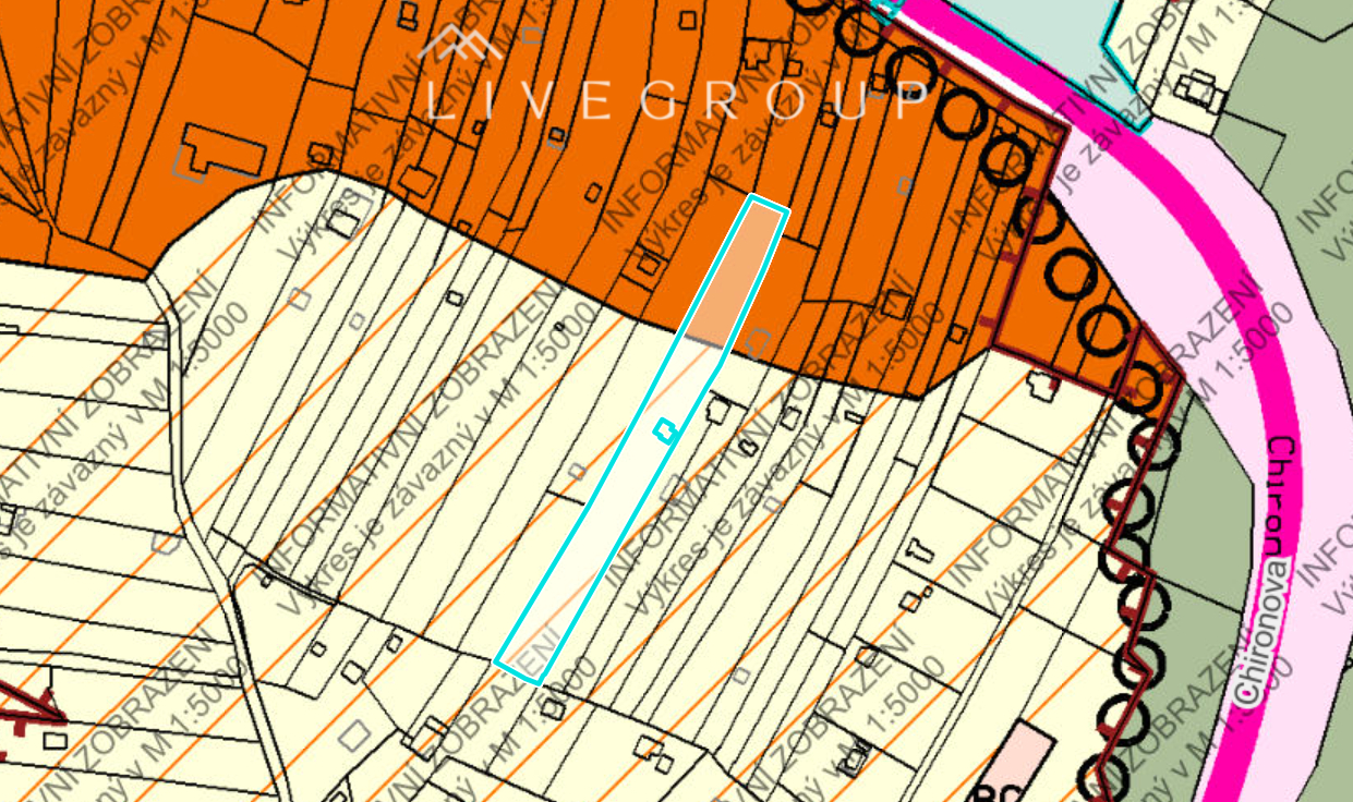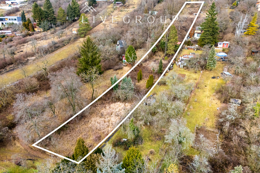 Část pozemku 640 m2 je dle Územního plánu obce vedena jako plocha čistého bydlení BC, tj. k zástavbě rodinného bydlení a nachází se v tzv. stabilizovaném území, kde se nepředpokládá žádný větší rozvoj a počítá se spíš s dostavbou v souladu s kapacitou sousedních staveb. Další část pozemku 1.657 m2 je dle ÚP města Brna určena pro výstavbu rekreačního objektu se zastavěnou plochou do 25 m2 - přízemní objekt s obytným podkrovím (1x PP, 1x NP, 1x podkroví). Dle nového ÚP obce možnost výstavby rekreačního objektu se zastavěnou plochou do 40 m2. Pozemek je svažitého charakteru s polétavými dřevinami. Elektřina je na hranici pozemku, studna a ČOV je třeba zbudovat. Šíře parcely činí 15,2 m a délka je 151 m.