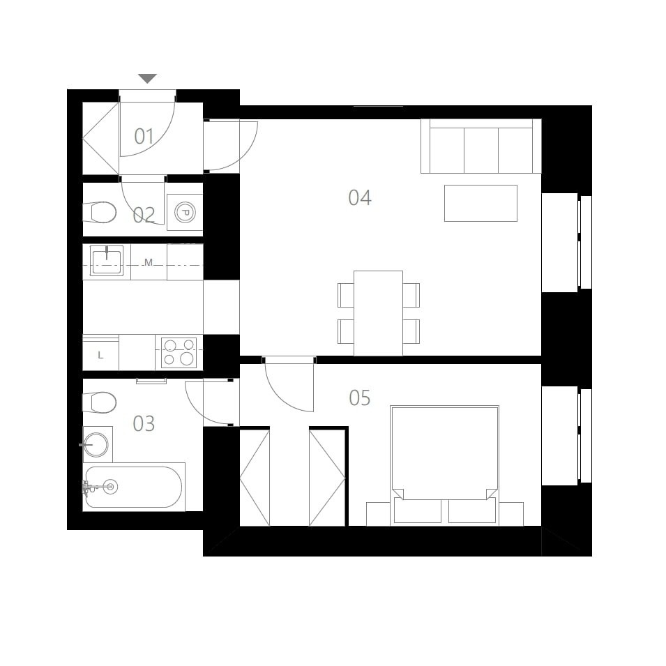 | Dispozice/podlahová plocha: | 2+kk/47 m² |