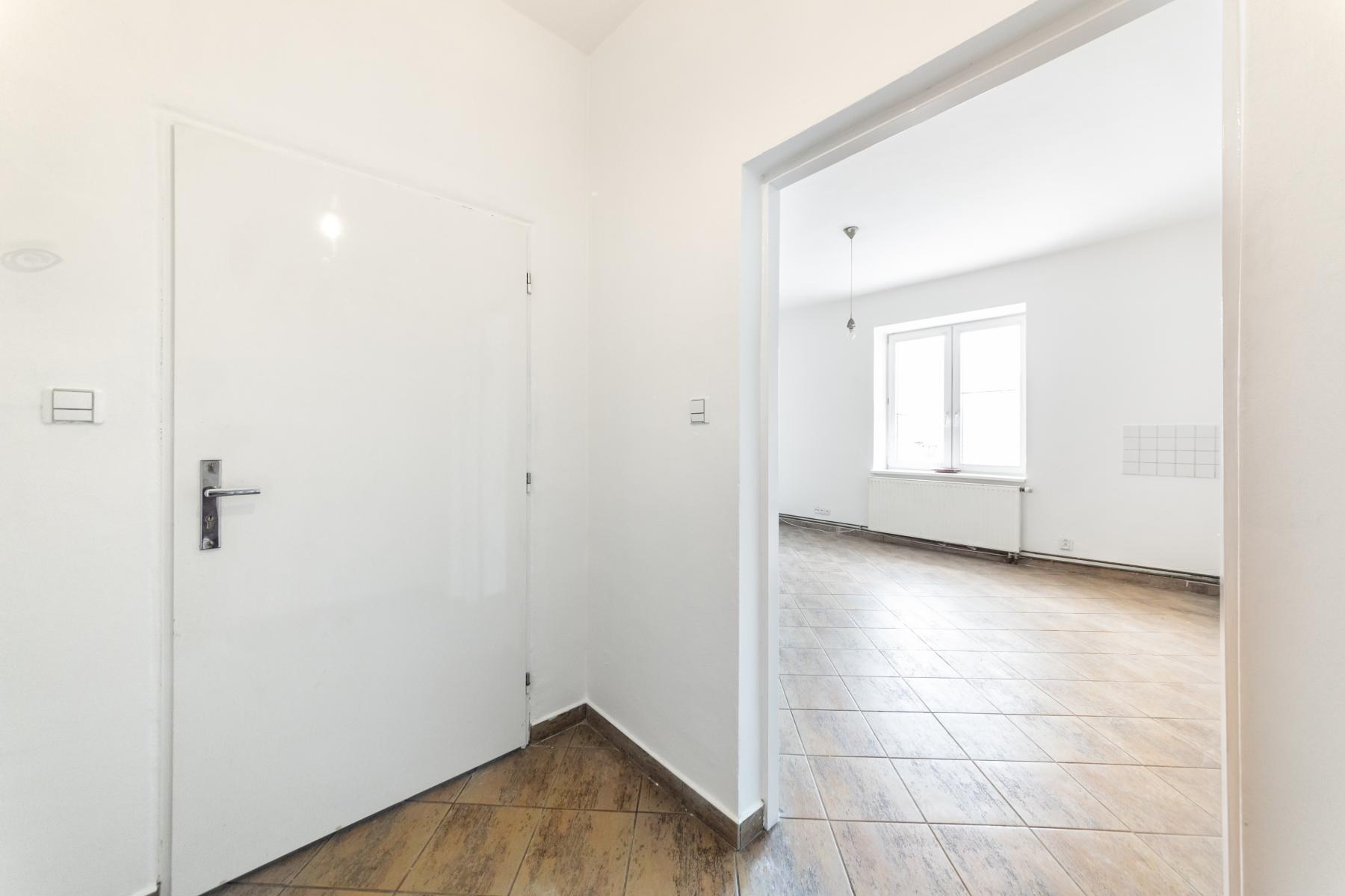 Dominantou bytu je prostorná, vzdušná obytná místnost s kuchyňským koutem, která plynule navazuje na vstupní předsíň. Z chodby pak vedou dveře do dvou samostatných, světlých ložnic nabízejících dostatek soukromí a klidu. Koupelna s toaletou je stylově řešená a díky francouzskému oknu příjemně prosvětlená denním světlem.