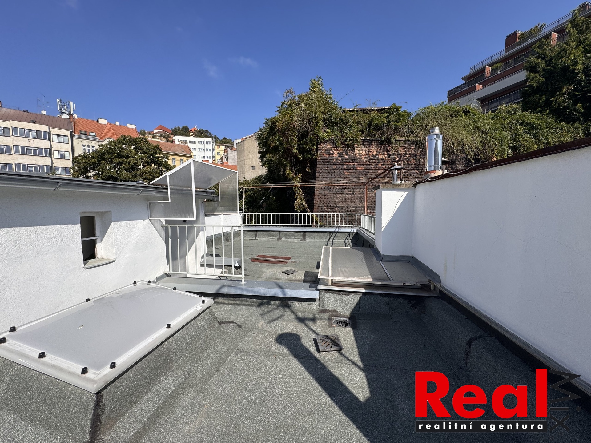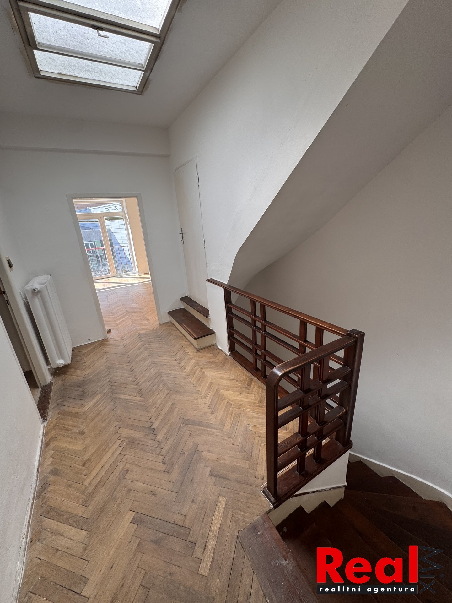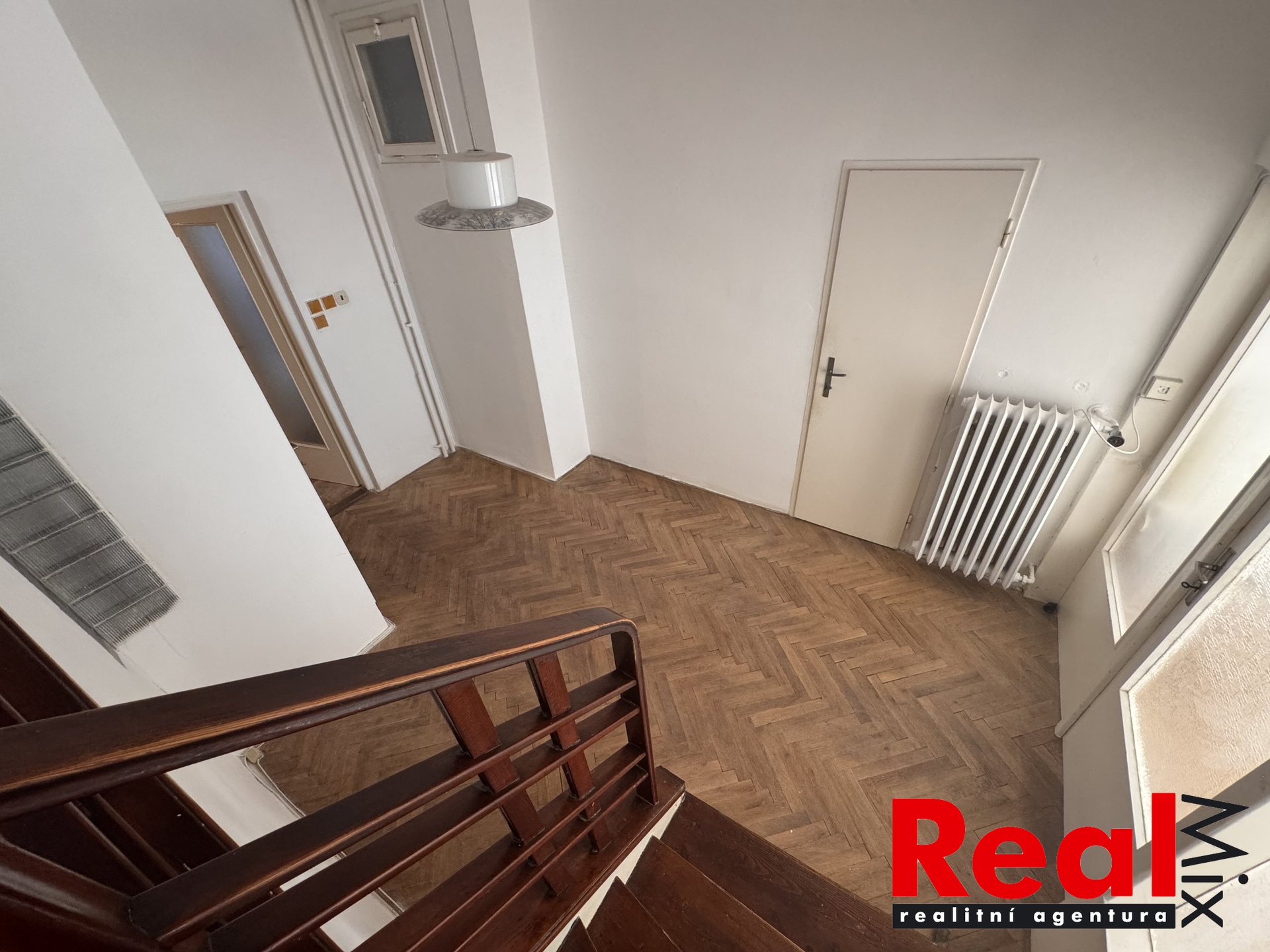 Nabízíme prodej výjimečného rodinného domu přímo v centru Brna jen několik minut chůze od historického centra, pěší zóny a veškerých dominant města, ul. Anenská, k.ú. Staré Brno. Jedná se o velice zajímavý prvorepublikový rodinný dům s dispozici 4+1, dostatečně velkou garáží, sklepními prostory a hlavně velkou střešní terasou s jedinečnou atmosférou středu města Brna. Dům má tři nadzemní podlaží + střešní terasu. Celková obytná plocha domu ve dvou obytných podlažích je 120m2 + garáž 19m2 + sklepní prostory (prádelna, sklad, sklep) 34m2 + střešní terasa cca 50m2. Dispozice obytných místností je následující. Přízemí: sklepní prostory, sklad, prádelna, celkem 34m2, garáž 19m2, vstupní chodba 6m2, 1. patro: pokoje 27m2 + 6,5 m2 (menší pokoj pro služebnou), kuchyň 9,2m2, chodba 9m2, WC 2m2, spíž, komora, 2. patro: pokoje 27m2 + 18m2, chodba 8m2, koupelna 5m2. Všechny místnosti (vyjma nejmenšího pokoje - původní pokoj pro služebnou) mají samostatné vstupy z centrální chodby. Pokoje do ulice jsou velmi prostorné a krásně prosvětlené díky velkým francouzským oknům. Střešní terasa domu má jednoznačně velký potenciál. Dům má také dostatek úložných prostor ve vstupním podlaží domu včetně prostorné garáže. Nemovitost je určena spíše k rekonstrukci, nicméně po drobných úpravách nic nebrání okamžitému užívání. K dispozici po dohodě. Více info a prohlídky v RK.