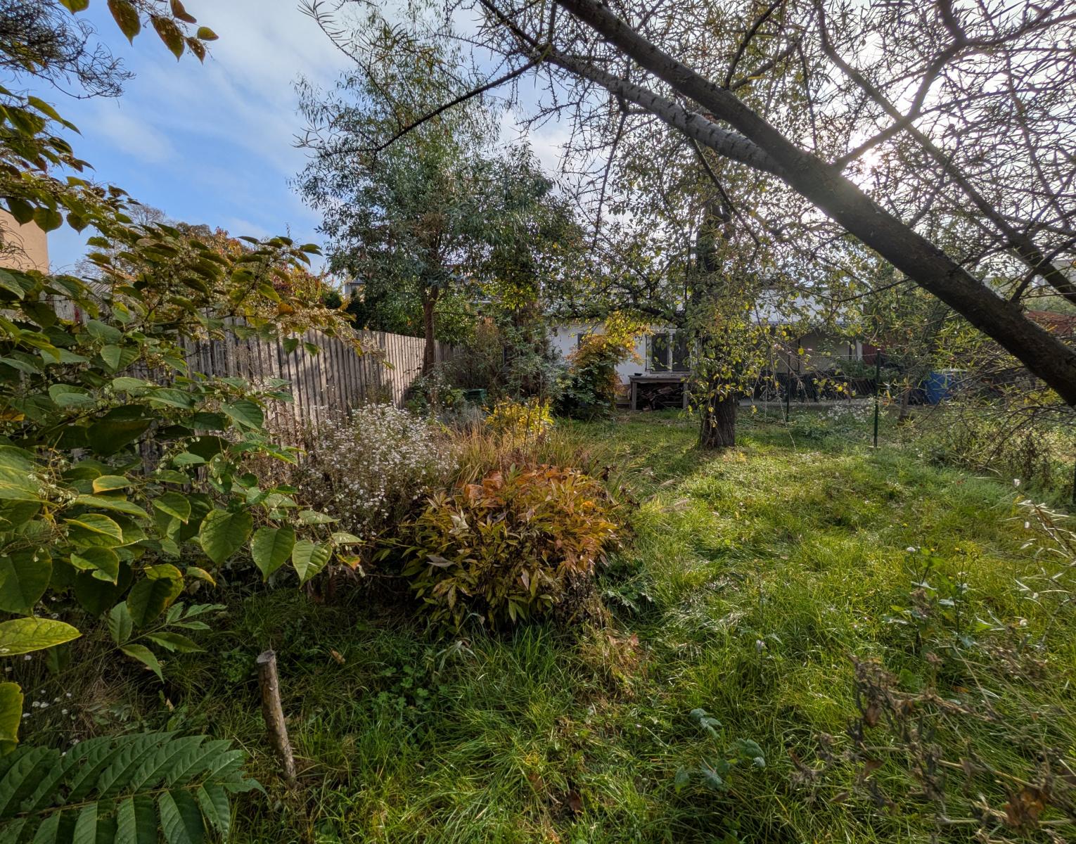 Částečně podsklepený řadový dům, který byl postaven na počátku minulého století, prošel v průběhu let několika stavebními úpravami (vybudování garáže, výměna oken, nové rozvody odpadů a částečně elektřiny, rekonstrukce 2.NP). Zastavěná plocha domem činí 150 m2, výměra zahrady 158 m2, zahradní stavba 15 m2. V zahradě je studna, která nyní slouží k zalévání zahrady, v budoucnu se počítá s vybudováním retenční nádrže a využití užitkové vody v domě. Zahradní stavba je napojena el. energii, nyní možnost vytápění kamny na tuhá paliva.