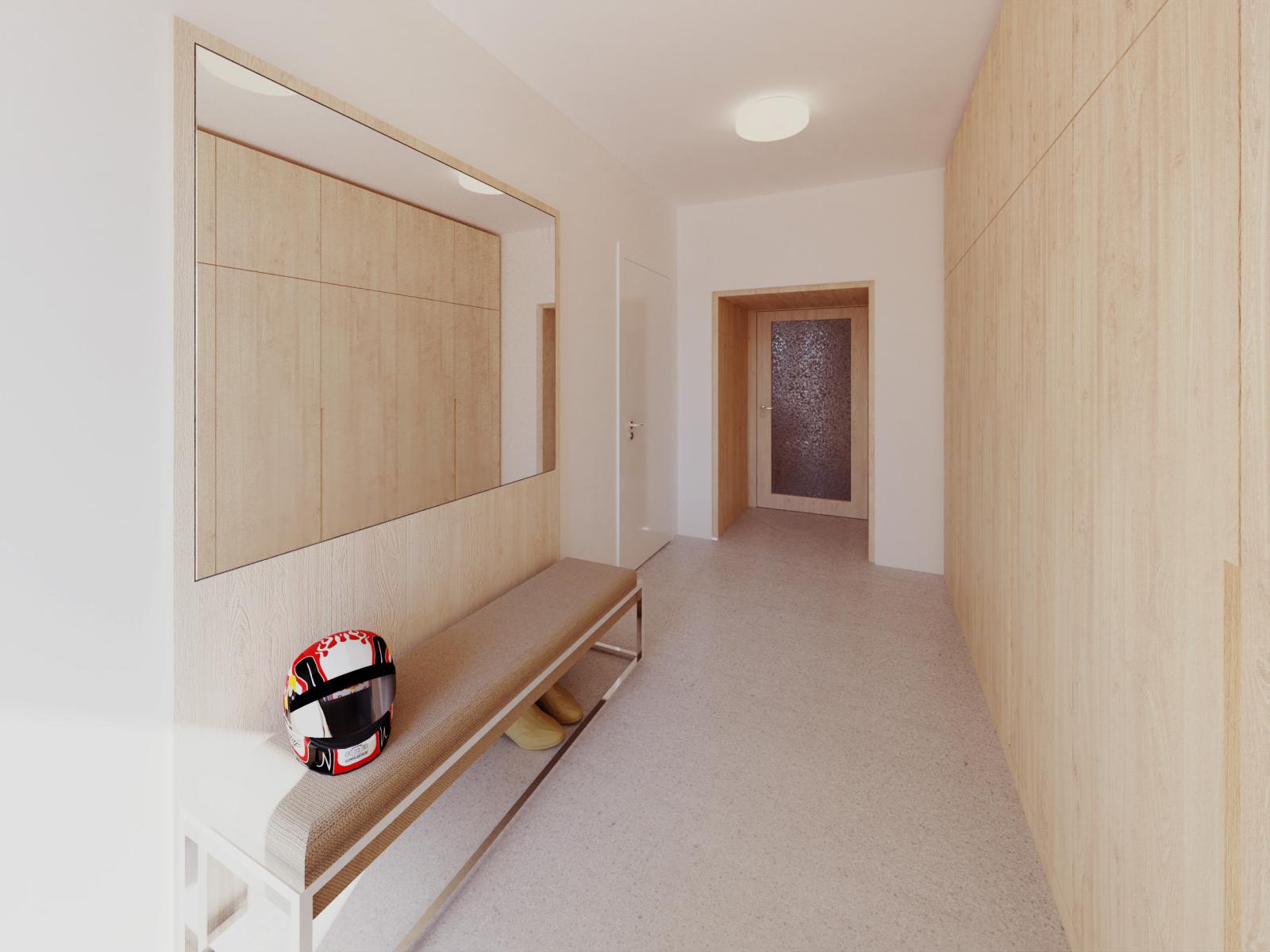2.NP PP 80 m2, po rekonstrukci (nové podlahy, omítky, rozvody, obklady, dlažby zařizovací předmět v koupelně a na WC), schodiště, hala, chodba, kuchyně 15m2, 3x pokoj 18,18,12m2, koupelna, WC; terasa 30m2, balkon 4m2, vstup na půdu;