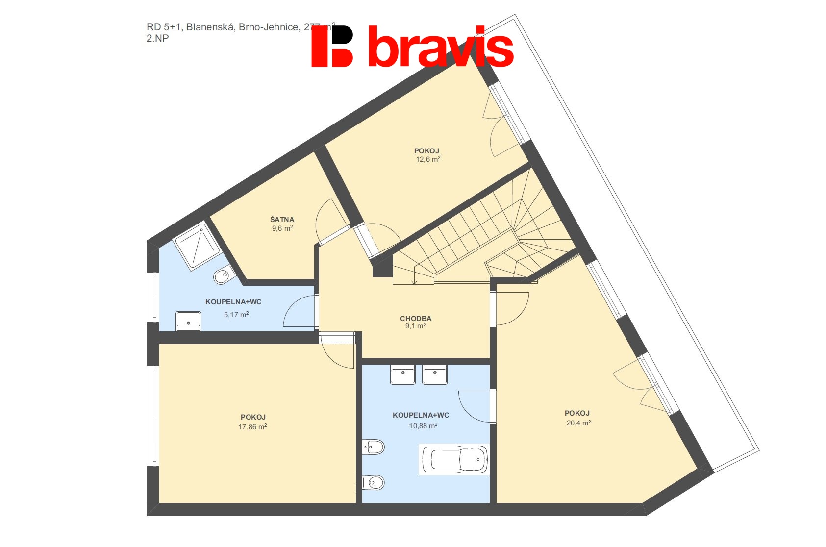Dispozice 5+kk na třech podlažích s celkovou užitnou plochou téměř 300 m².