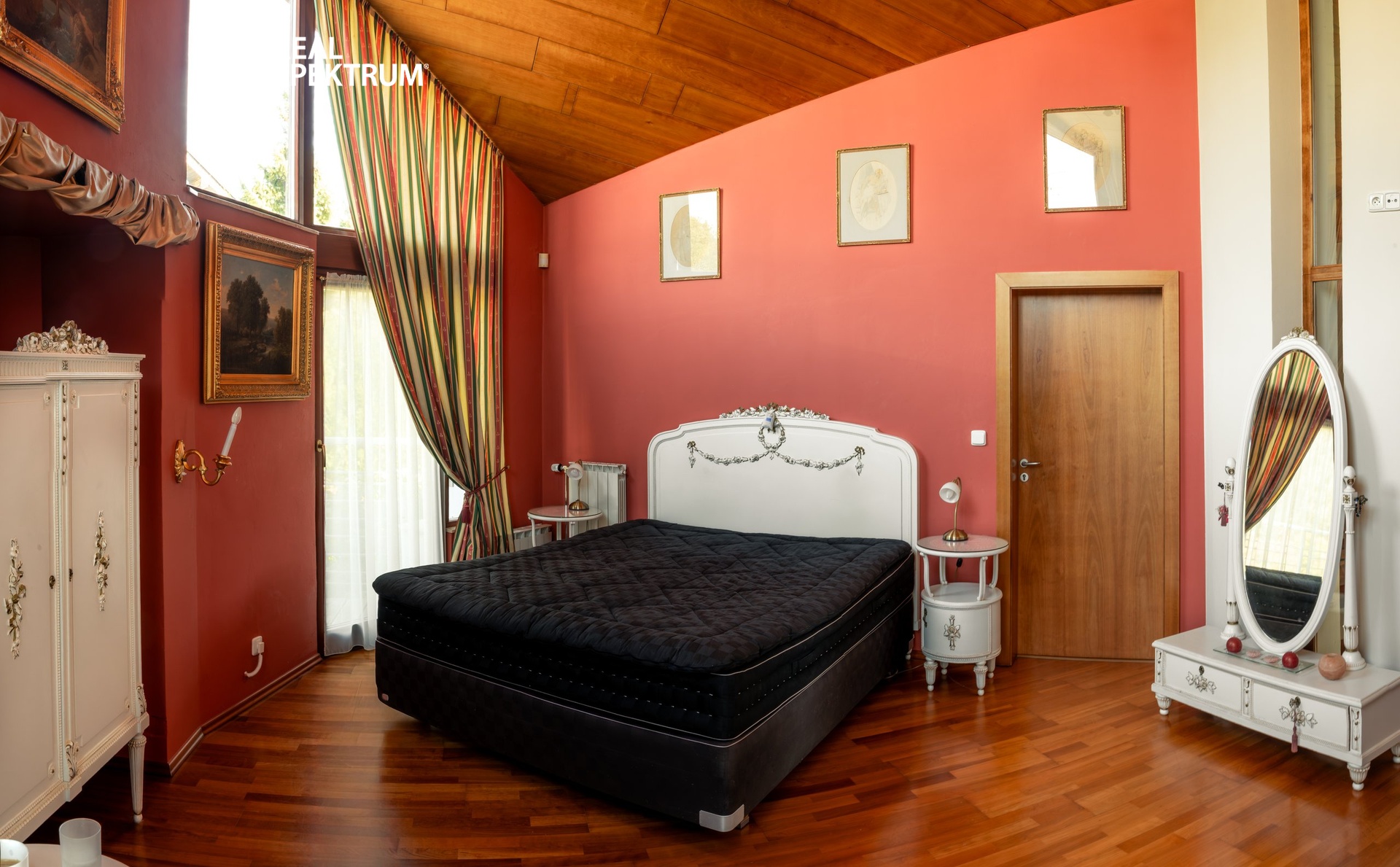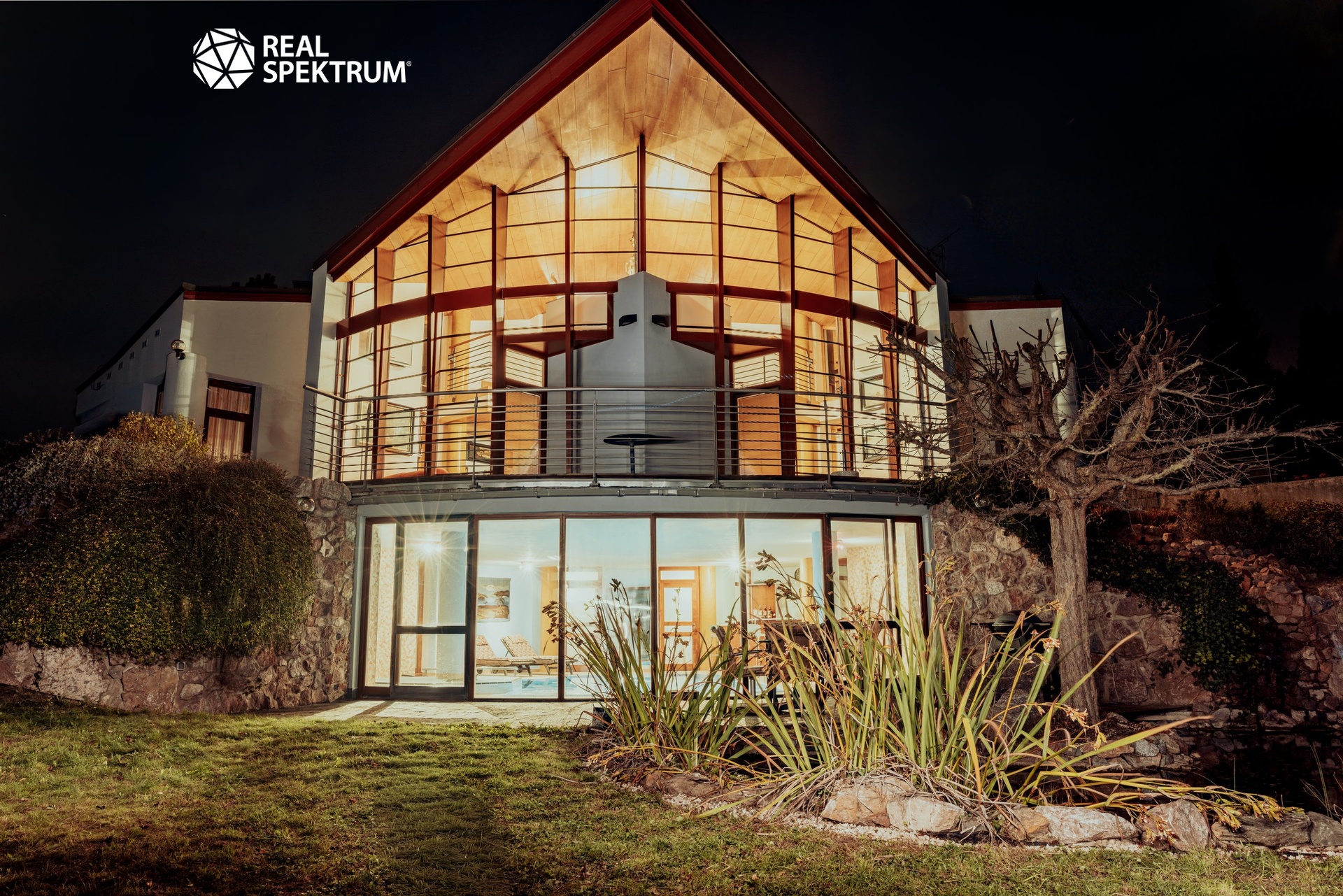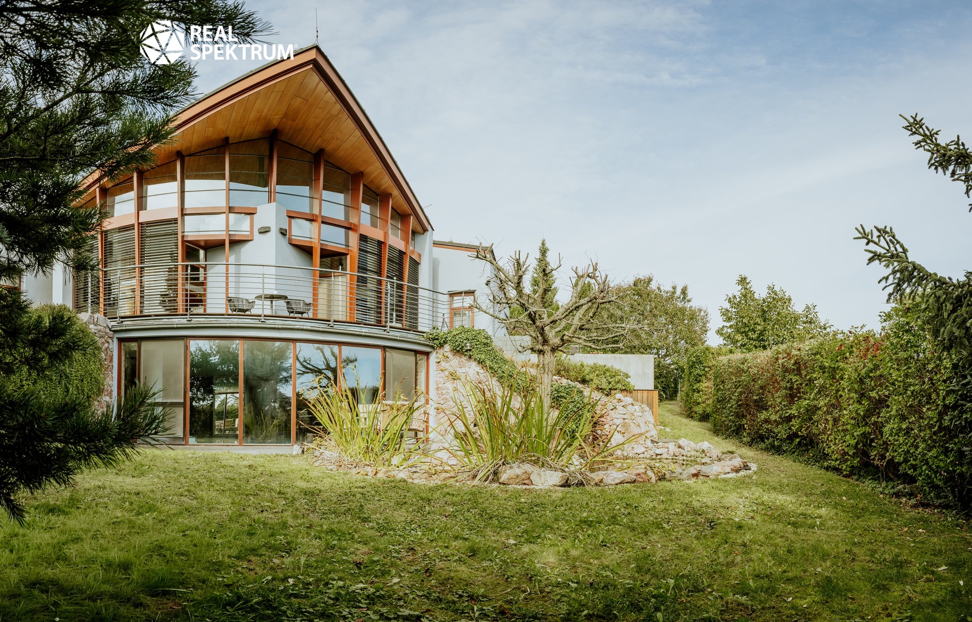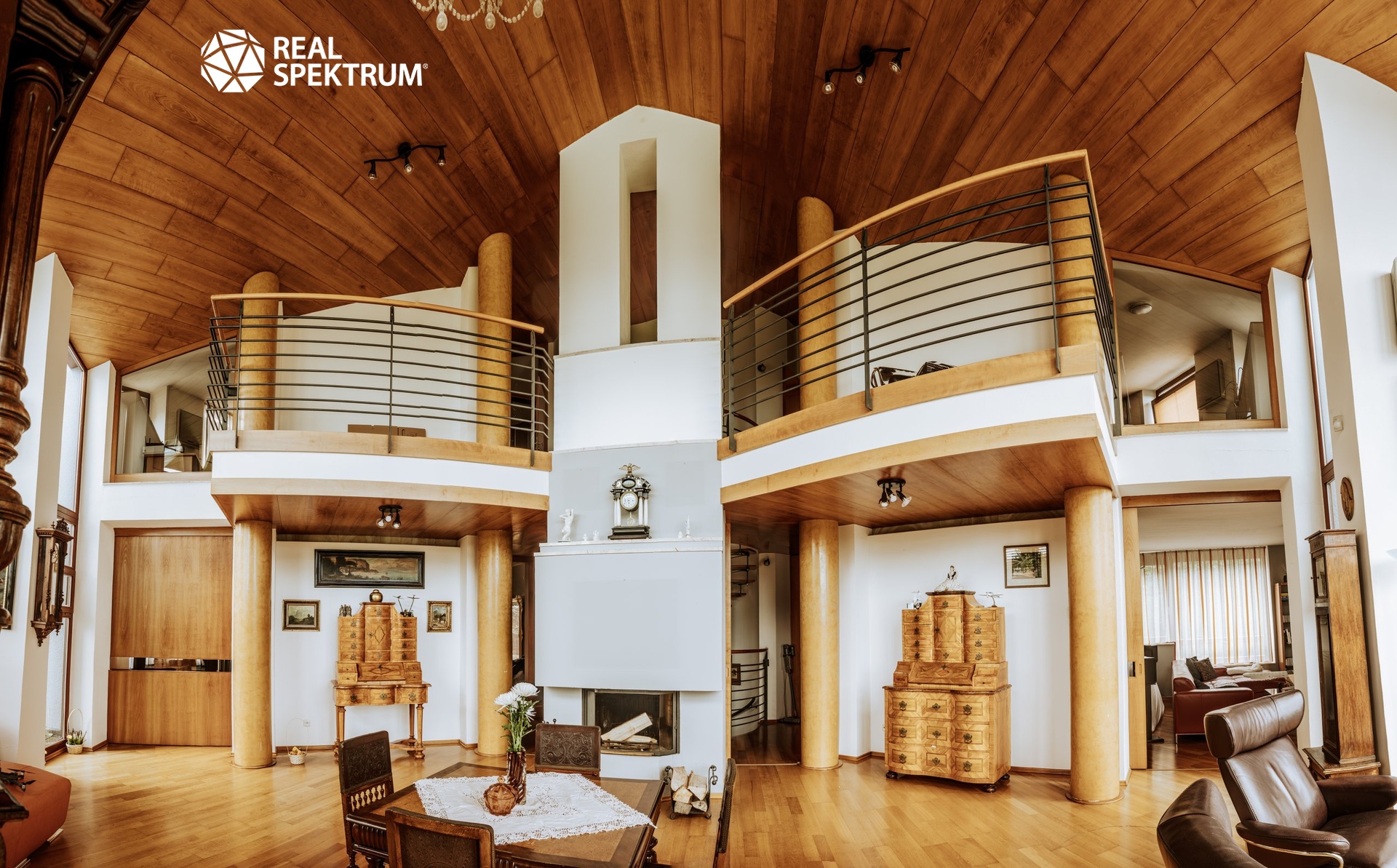 Dům nabízí velkorysý obytný prostor s řadou dominantních prvků - vysoké stropy, prosklené štíty a velká okna, krb a kombinace moderních a dobových prvků. Pro stavbu byly použity pouze nadstandardní materiály jako je například onyx nebo masiv (kanadská třešeň).