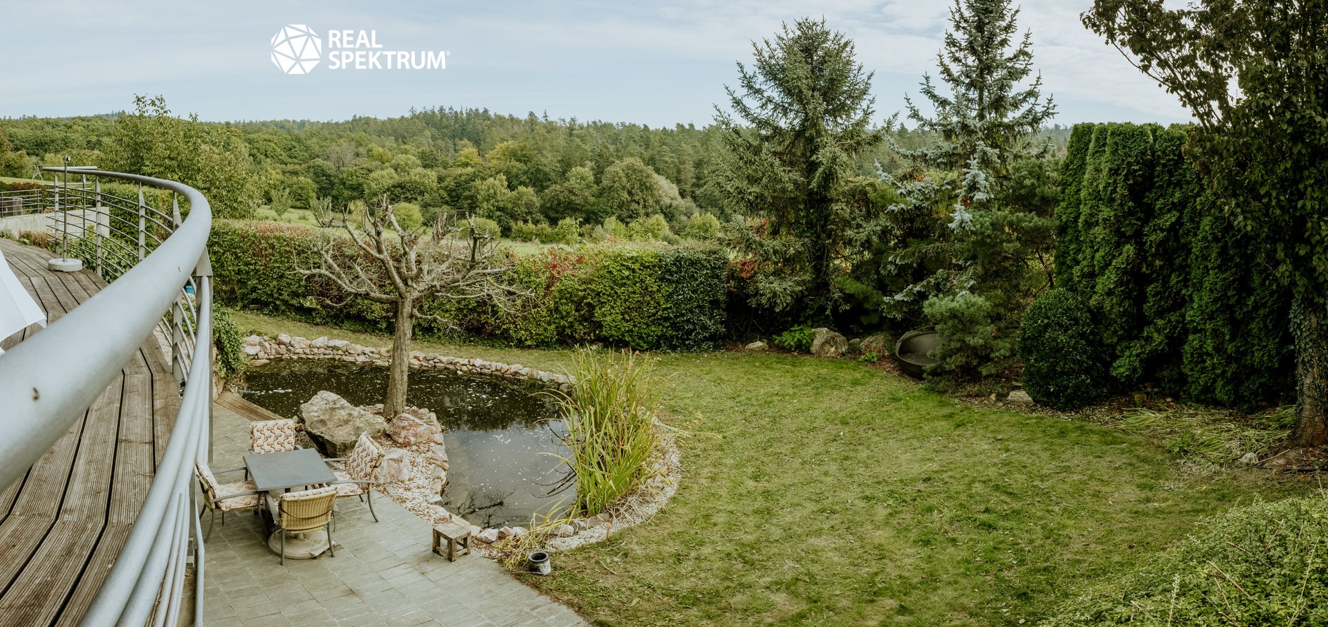 - rozlehlá zahrada s jezírkem a několika venkovními terasami s krásnými výhledy