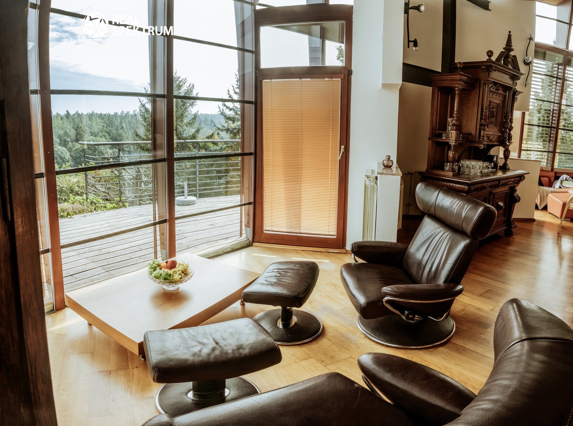 Ořešín klid u lesa, skvělé soukromí a rychlé spojení do města. Dům s více než 500 m² podlahové plochy nabízí velkorysý obytný prostor s vysokými stropy, rozsáhlým prosklením a krbem. Kolaudace 1998, zásadní rekonstrukce 2022.