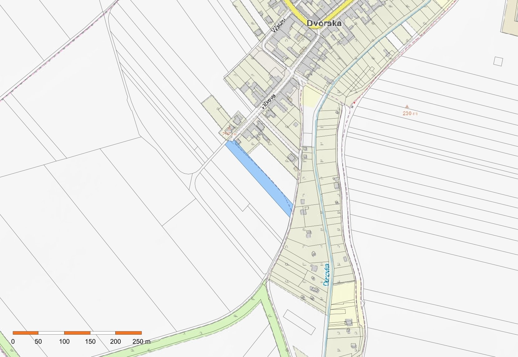 Jedná se o rovinatý pozemek obdélníkového tvaru s šířkou přes 20 m a délkou přes 170 m,
