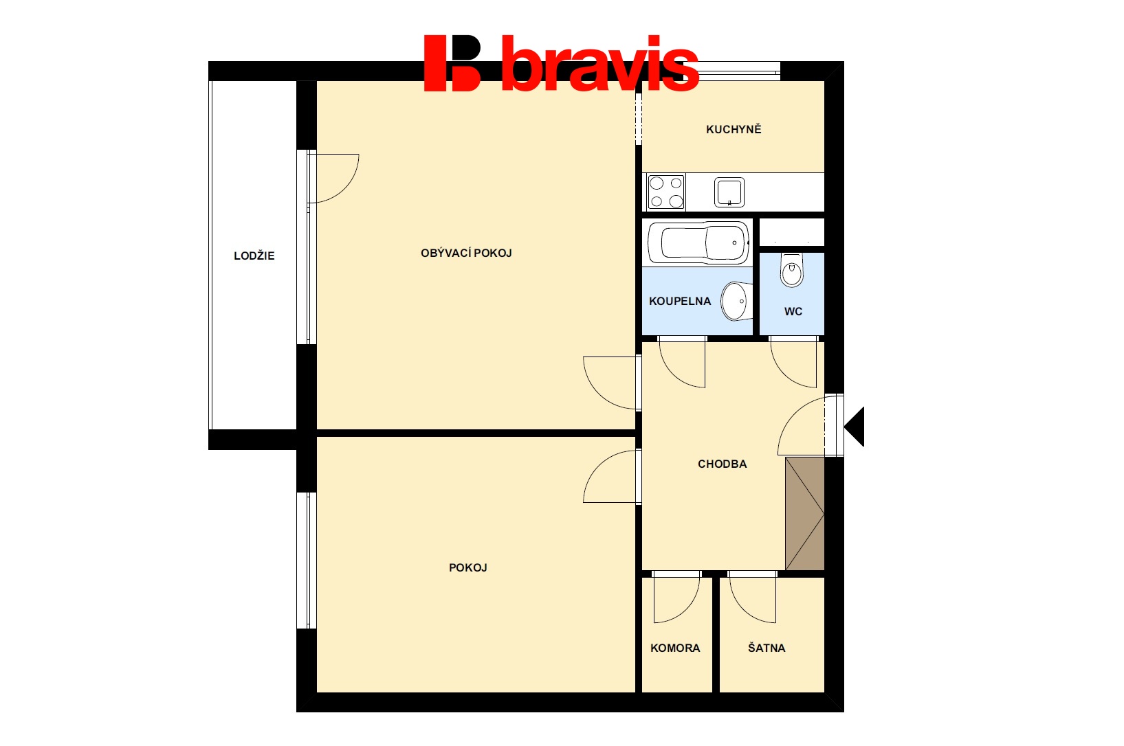 Prodej světlého bytu 2+kk s lodžií, šatnou a komorou – Brno Bohunice, ul. Uzbecká