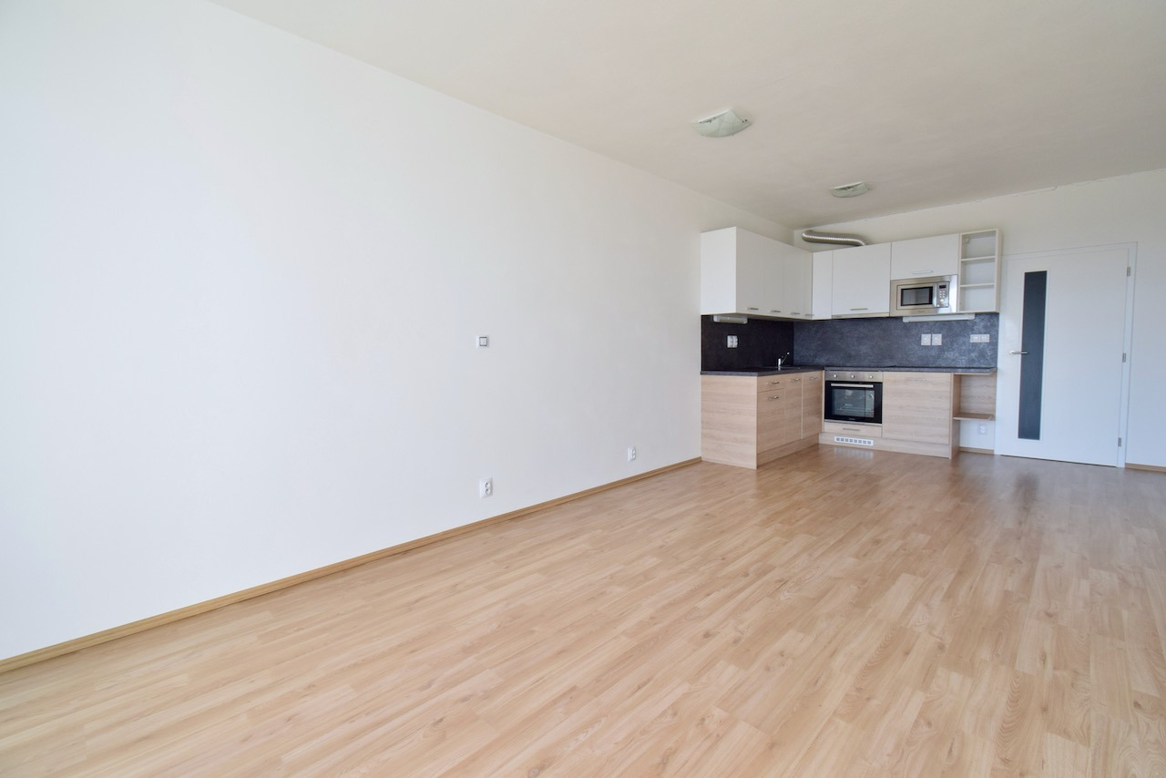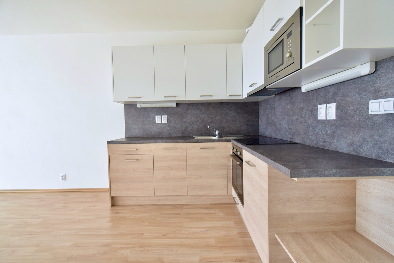 Byt se nabízí částečně vybavený. Moderní kuchyňská linka disponuj lednicí, indukční varnou deskou, elektrickou troubou, digestoř, mikrovlnnou troubou a myčkou. Z pokoje je vstup na prostorný balkón. V koupelně se nachází vana, umyvadlo se zrcadlem a toaleta.