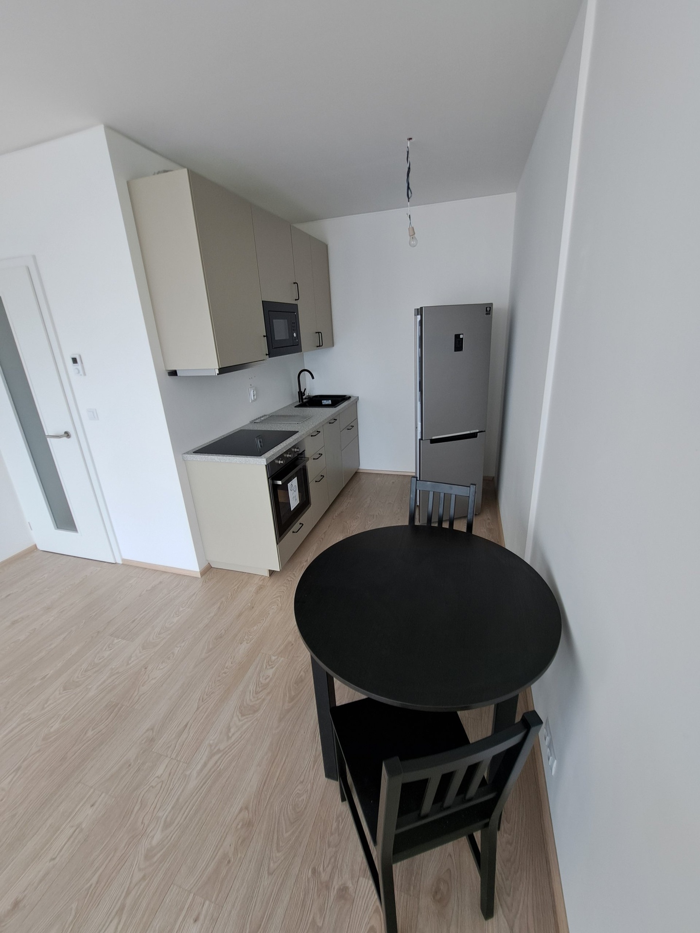 Nová kuchyňská linka se spotřebiči (lednička s mrazákem, varná deska, digestoř, elektrická trouba, MV trouba, myčka, dřez, baterie), pokoj (skříně IKEA), koupelna (sprcha, umyvadlo se skříňkou, zrcadlo, závěsné WC, topný žebřík), chodba (skříně IKEA, příprava na pračku), světla, venkovní žaluzie.