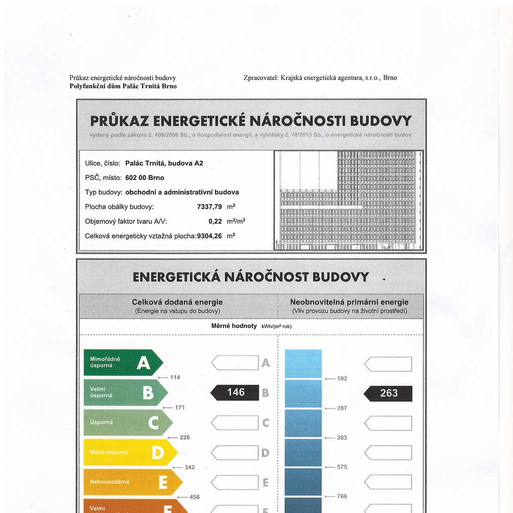 Ukazatel energetické náročnosti budovy:86 kWh/m²