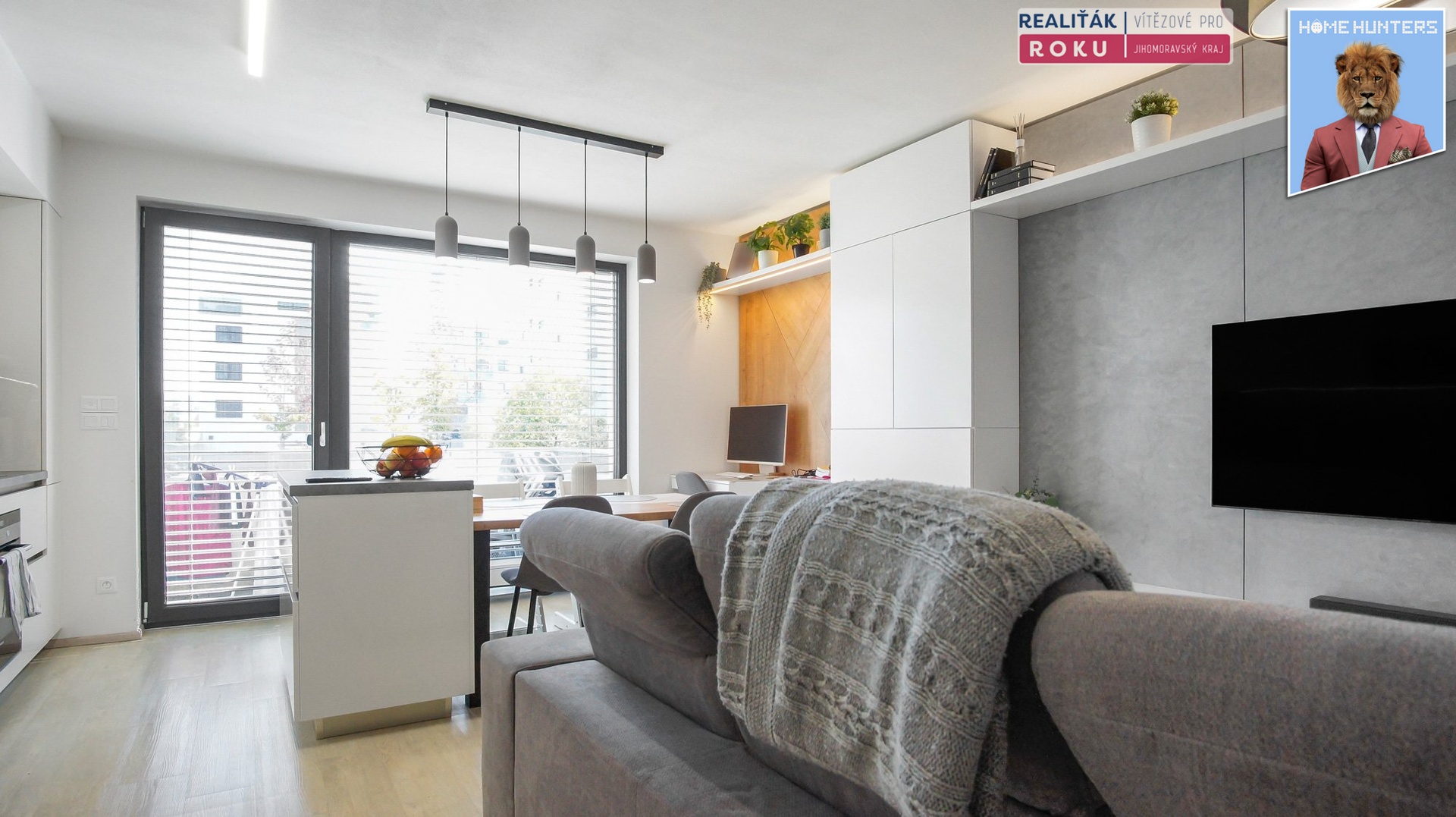 Tento byt se nachází v 2.NP v domě s výtahem a svým novým nájemníkům nabízí moderní bydlení. Byt se pronajímá vybavený, dostatek úložných prostor zajišťují četné vestavěné skříně, které jsou šikovně osvětleny integrovaným osvětlením. Teplo v bytě si regulujete pomoci termostatu a světlost zase pomoci elektrických venkovních žaluzií. K dispozici Vám je ložnice, dětský pokoj, koupelna s velkou vanou a také sprchovým koutem. Hlavním prostorem bytu je obrovský obývací pokoj s kuchyňskou linkou, ostrůvkem, jídelním stolem a pohodlným gaučem. Najdete zde také pracovní kout pro práci na PC. Z tohoto obývacího pokoje máte přístup na prostorný balkon o velikosti 4,5 m2. Všechny sezónní věci si můžete uložit do zděného sklepa o velikosti 4,2 m2. Byt je tedy vhodný jak pro pár, tak i pro tříčlennou rodinu.