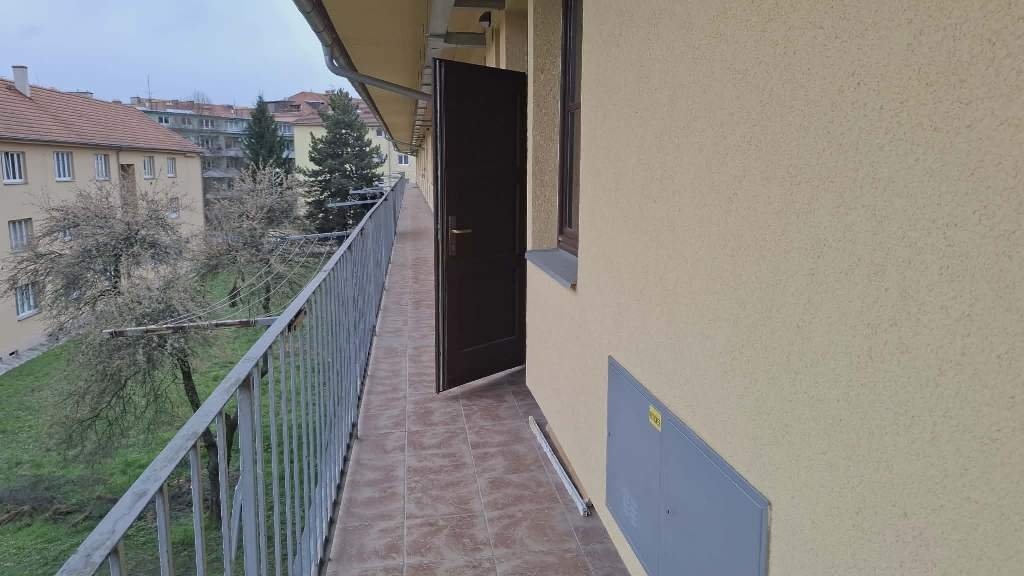 Byt se nachází ve 2.patře cihlového, celkově zrekonstruovaného domu, je přístupný z pavlače, která současně slouží i jako balkon k bytu. Byt má celkovou plochu 26 m2, obytný pokoj je velký přibližně 16 m2, kuchyně 6 m2, ostatní plochu tvoří menší předsíň a koupelna se sprchovým koutem a WC.